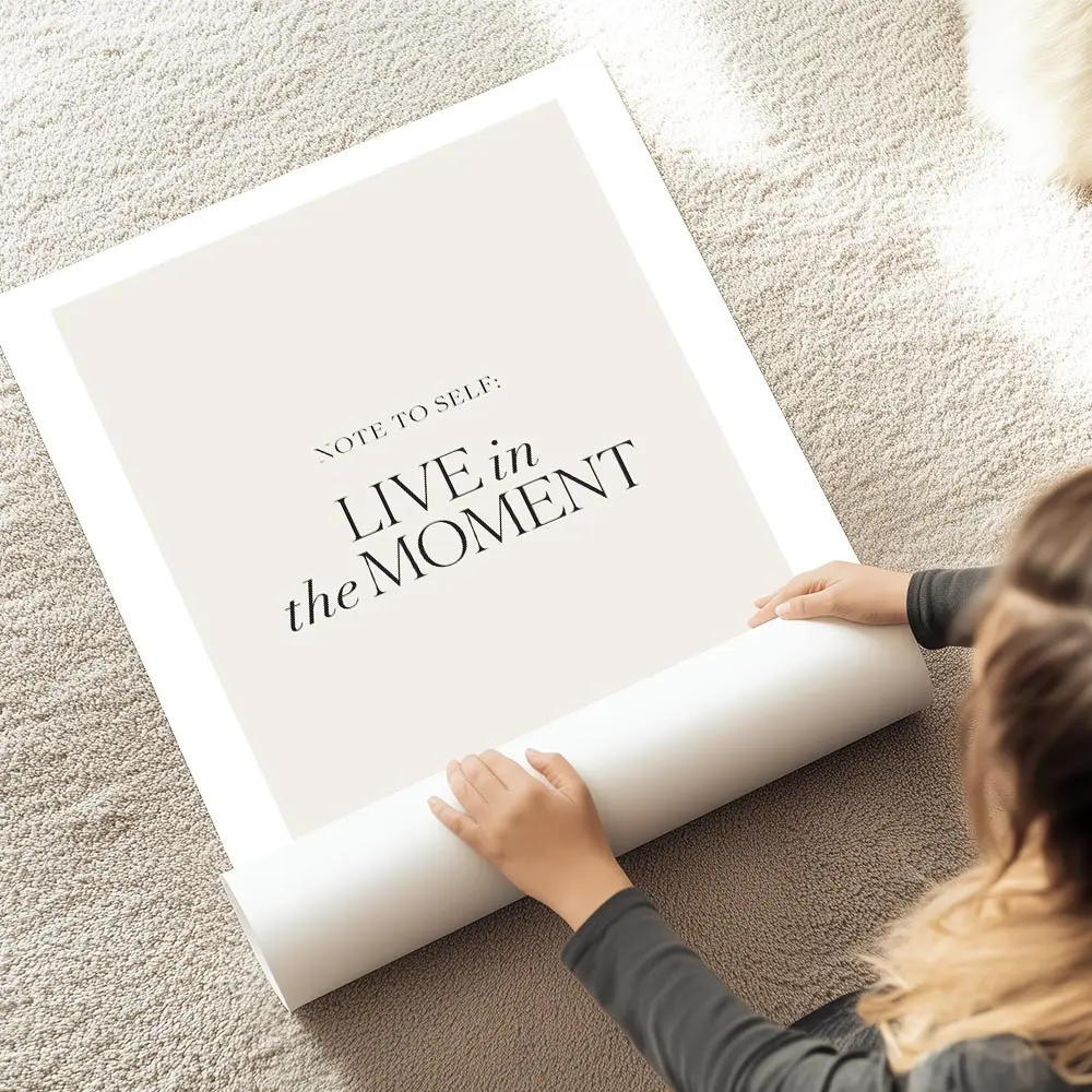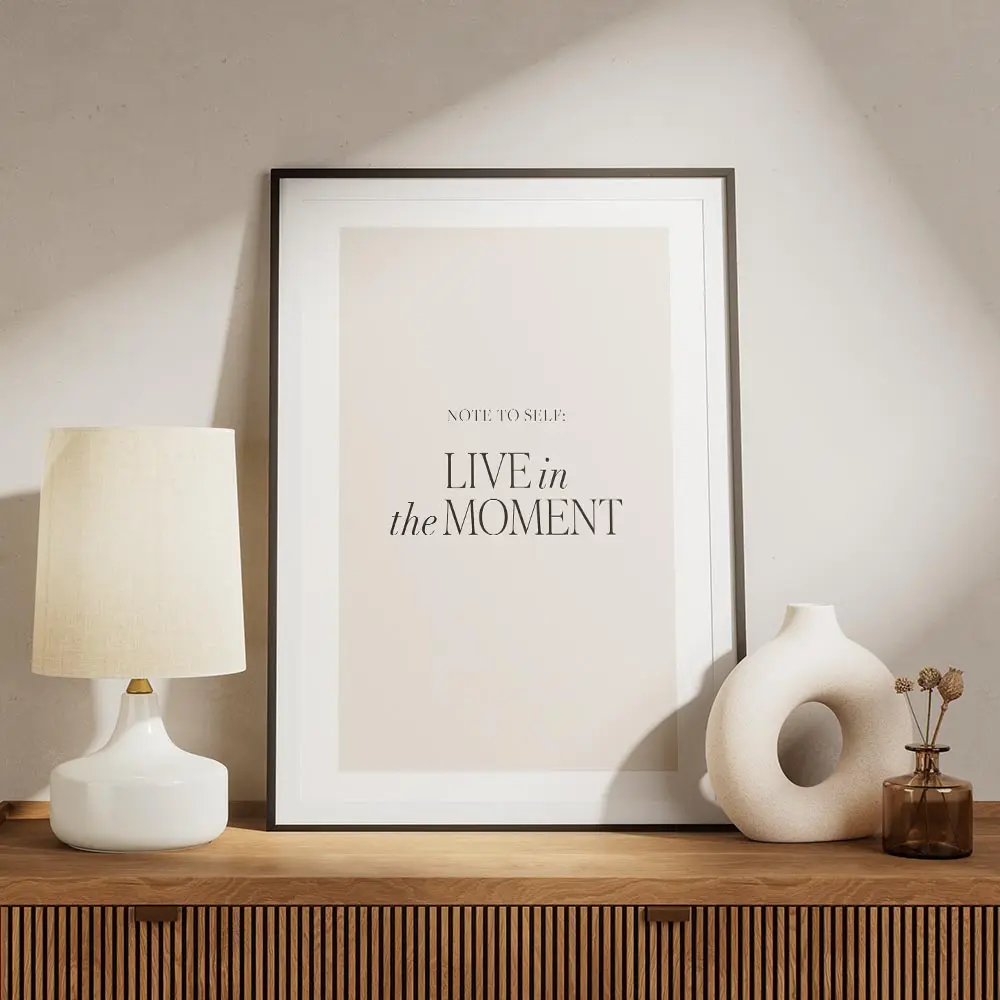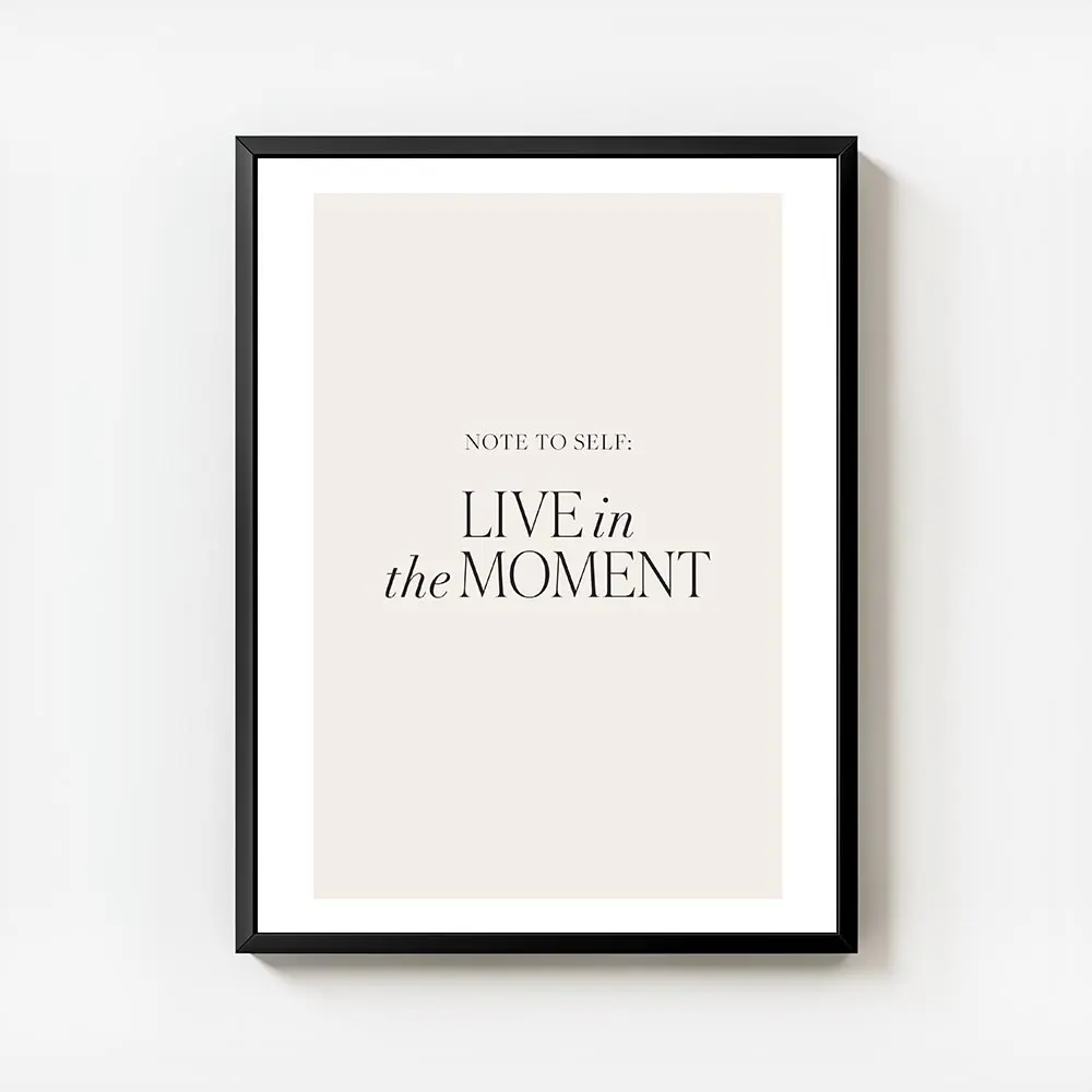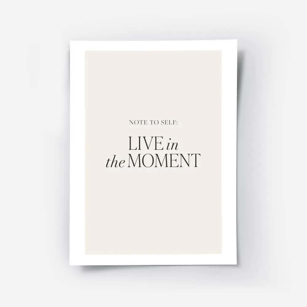 affiche avec le texte note to self live in the moment en typographie noire sur f.webp