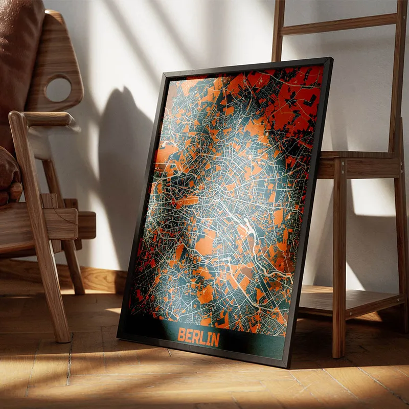 Ce qu'on adore, c'est le style rétro de cette carte. Les teintes légèrement vieillies apportent une touche nostalgique, ça nous rappelle les vieux guides de voyages. On imagine déjà des discussions autour de cette affiche. Les amis vont dire : "Tiens, tu te souviens de notre séjour à Berlin ?" C'est tellement vivant, riche en souvenirs. L'ambiance qu'elle dégage, c'est quelque chose de vraiment unique, presque palpable.