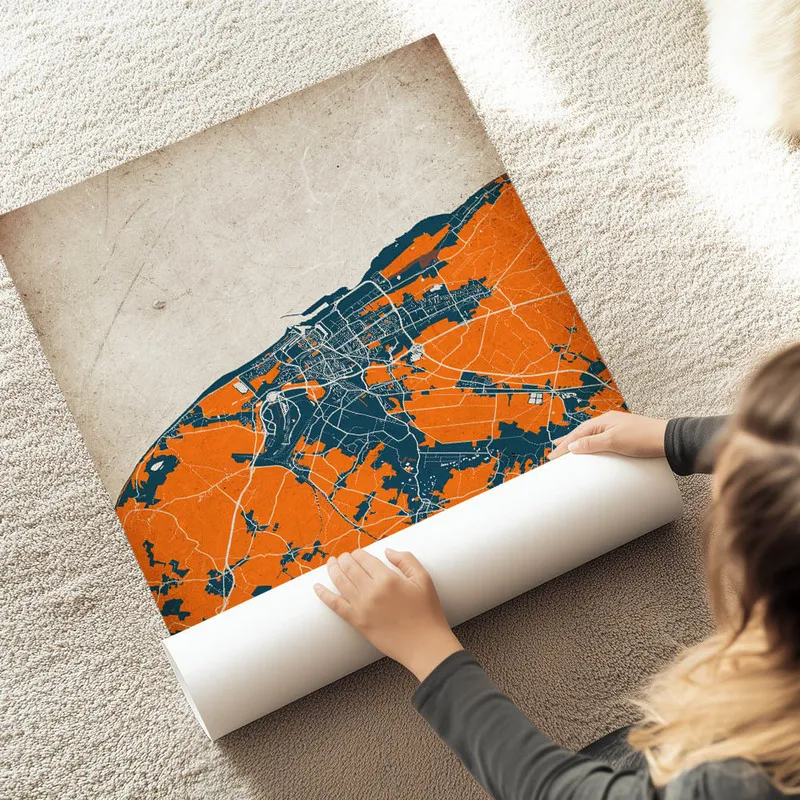 Ce qui nous touche, c'est le détail de la carte. On y voit les bâtiments emblématiques qui font la beauté de cette ville, et même les petites ruelles si typiques. On reconnaît aussi le phare, avec son air un peu mystérieux. C'est fou comme une simple illustration peut évoquer des souvenirs ou des projets de voyage. On se dit qu'elle va très bien dans un salon ou même un bureau, pour apporter une petite touche d'évasion.