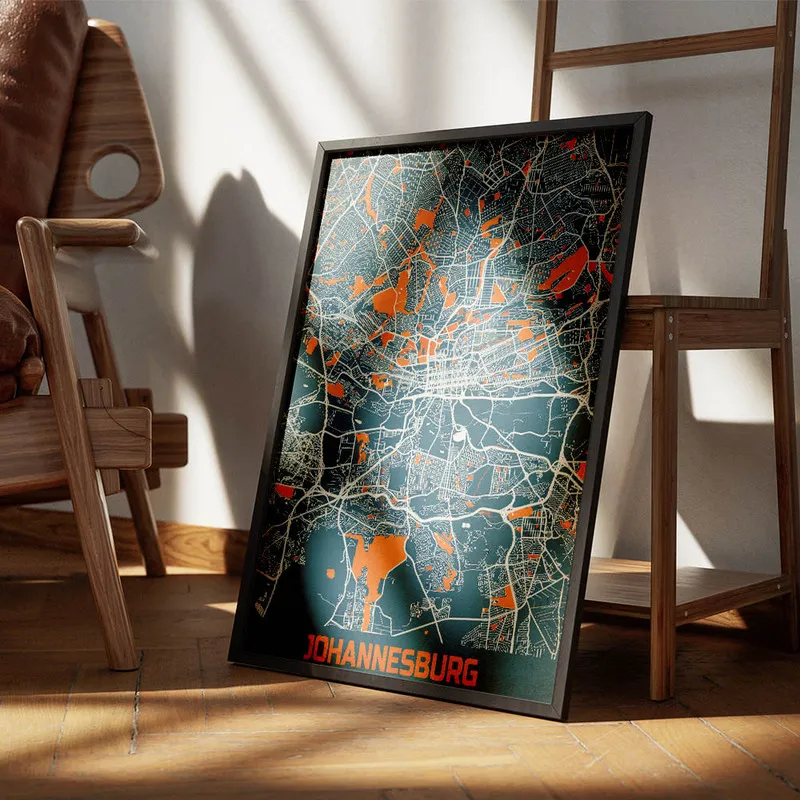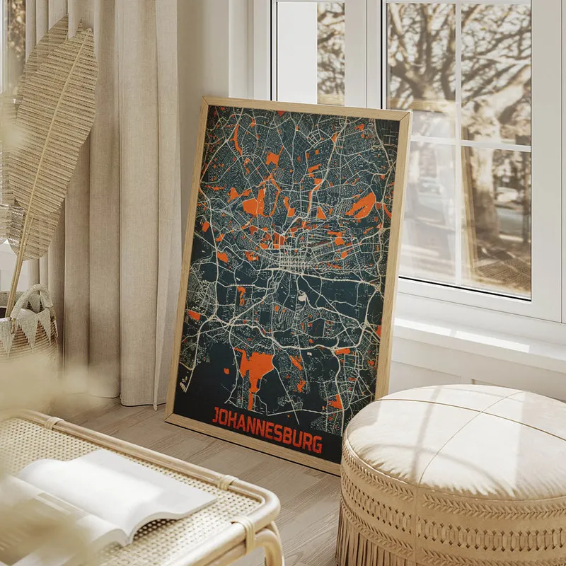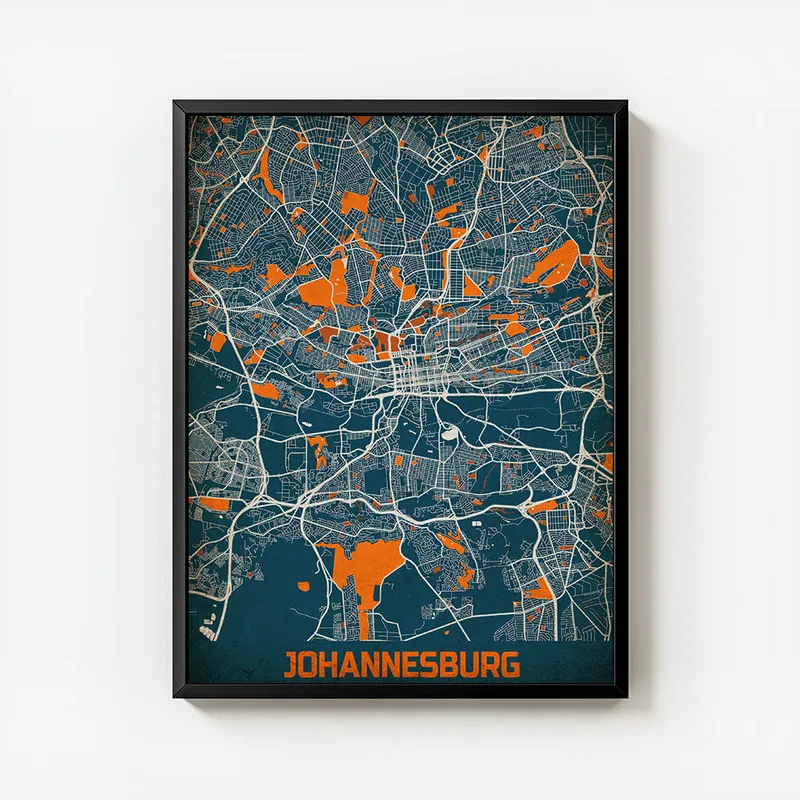 Ce qui nous frappe, c'est la façon dont chaque détail attire le regard. On a l'impression de plonger dans l'ambiance d'un autre temps, d'une époque où Johannesburg brillait de mille feux. On découvre des ruelles, des lieux emblématiques qui nous donnent envie d'explorer cette ville vibrante. Que ce soit pour une déco de salon ou même un coin bureau, elle amène une véritable atmosphère, chaleureuse et inspirante.