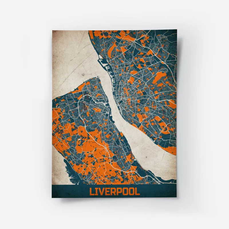 On adore l'Affiche carte Liverpool vintage. En la regardant, on ressent tout de suite une ambiance nostalgique et chaleureuse. Cette carte nous emmène faire un tour dans une ville pleine de caractère. On a vraiment l'impression de voyager dans le temps, vous voyez ? Les couleurs, les détails, tout ça nous raconte une histoire, celle d'une ville au riche passé culturel.