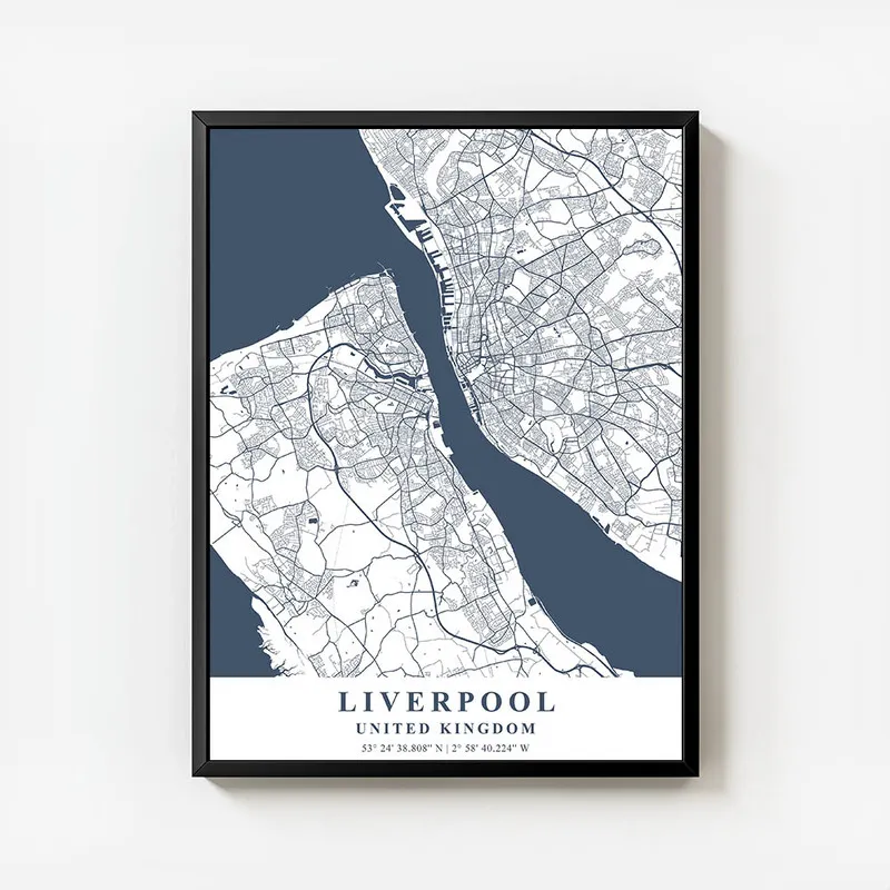 On ne peut que tomber sous le charme de cette Affiche carte Liverpool. Elle nous transporte, oui vraiment, loin, à Liverpool, cette ville pleine de vie. En la regardant, on ressent l'âme vibrante de cette métropole. Les couleurs sont superbes, un mélange de nuances qui donne envie de se plonger dans son histoire et son ambiance.