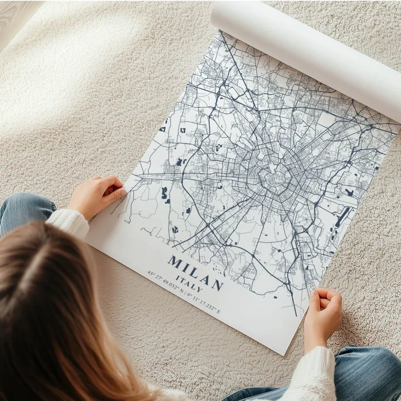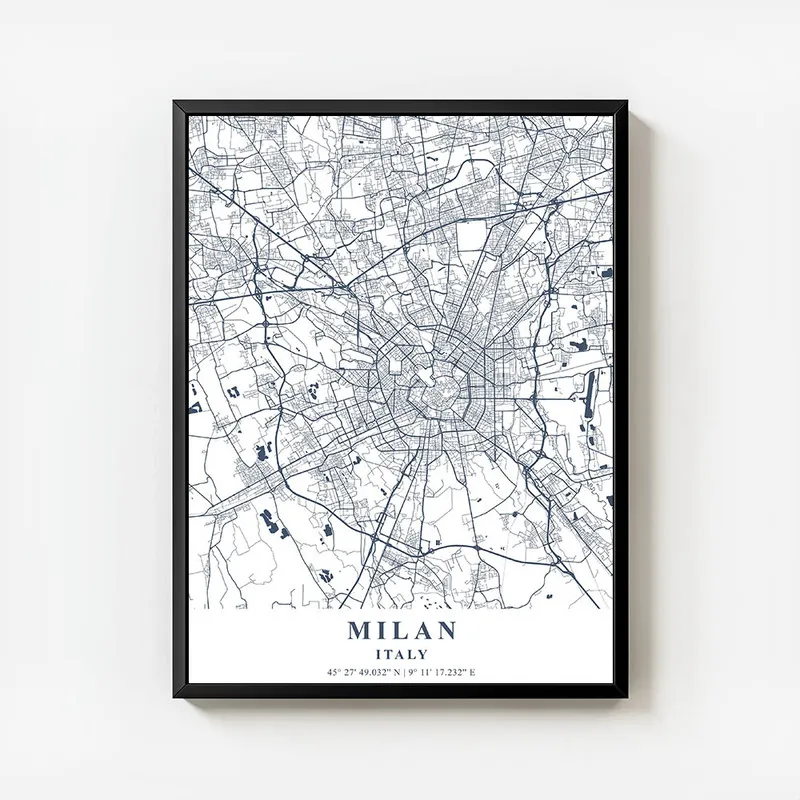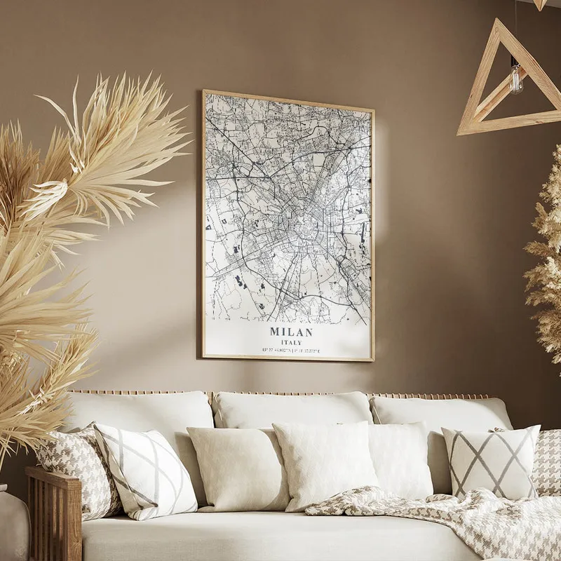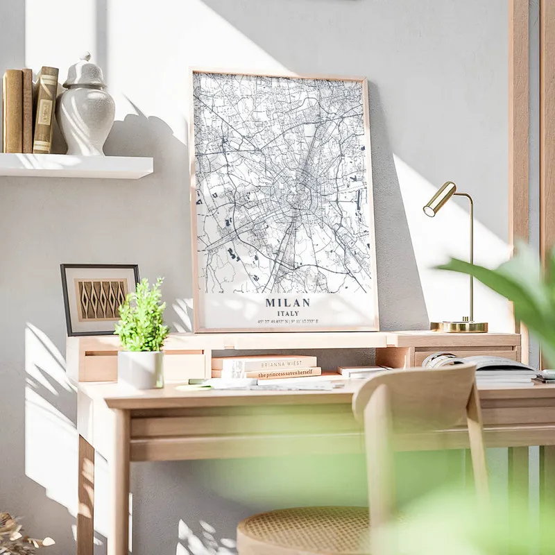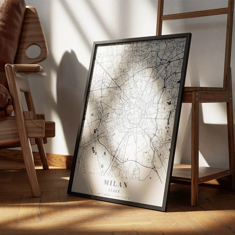 On peut l'associer avec d'autres affiches de villes, ça donnerait un ensemble super sympa, par exemple avec des affiches de voyage ou même une affiche d'architecture pour un style encore plus intéressant. En tout cas, c'est sûr, l'Affiche carte Milan va embellir votre quotidien et vous rappeler les plaisirs simples de la vie italienne !