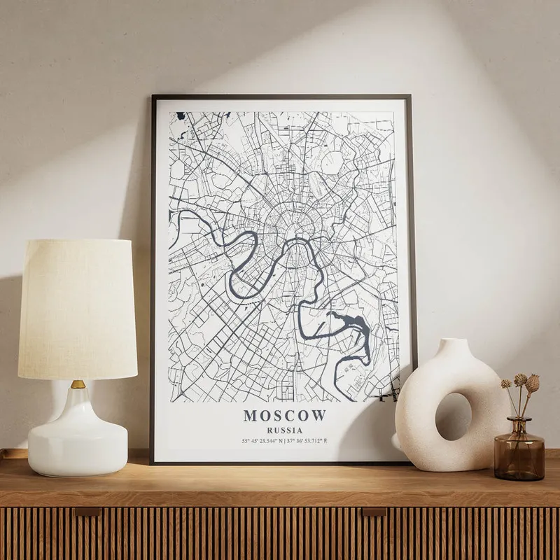 On est vraiment tombé amoureux de l'Affiche carte Moscow. Elle a ce petit truc qui attire l'œil, un mélange de couleurs qui fait voyager. On dirait presque qu'on se balade dans les rues de Moscou, avec ses bâtiments iconiques. Cette carte, elle nous invite à explorer, à rêver de grandes aventures. Qui n'a jamais eu envie de prendre un billet pour la Russie ?