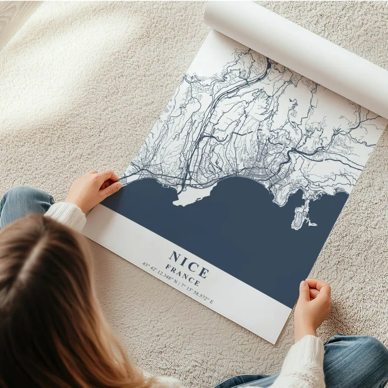 On pense que ce poster irait à merveille dans un salon, une chambre ou même une cuisine, pour apporter une touche méditerranéenne. Et pourquoi ne pas l'associer avec d'autres affiches de paysages ? On imagine bien un petit coin dédié aux paysages ou même des plages pour un véritable dépaysement. En tout cas, l'Affiche carte Nice promet de faire sourire chaque personne qui la croise, et ça, ça fait du bien !
