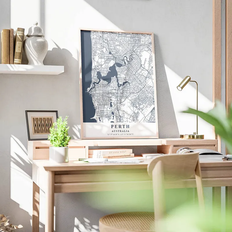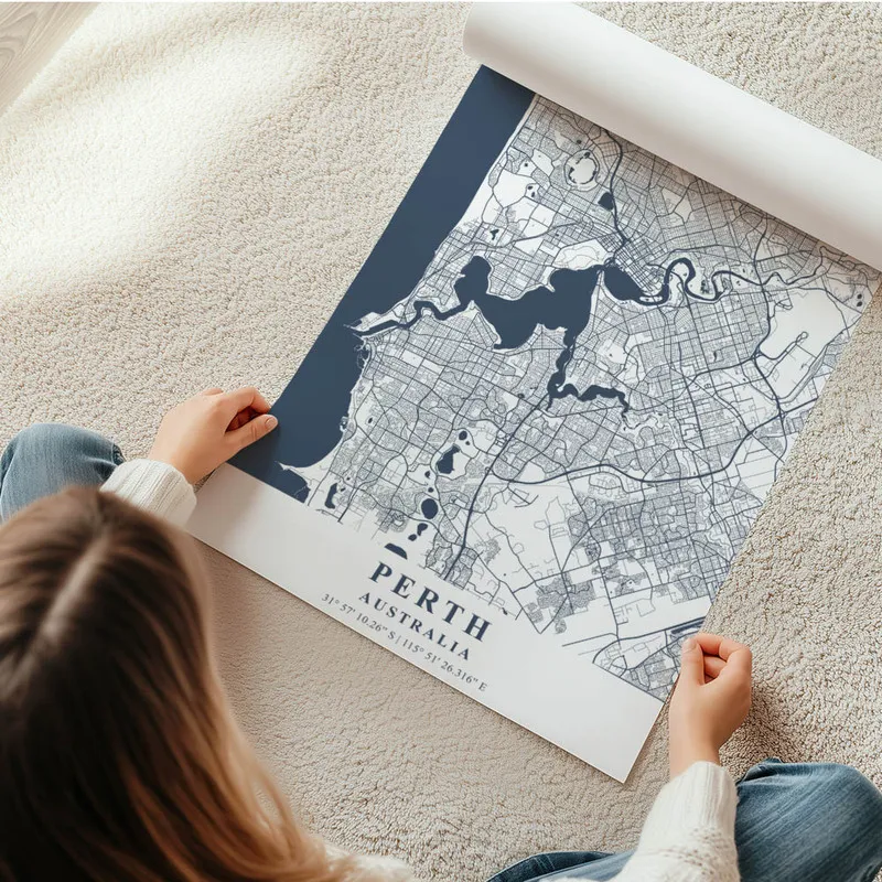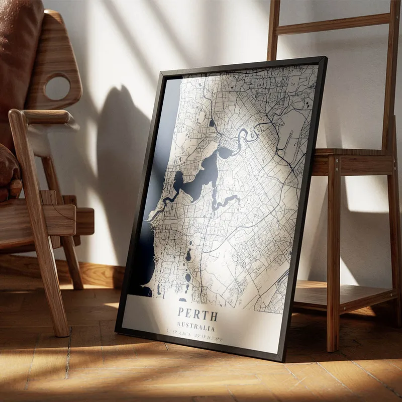 On adore l'Affiche carte Perth, c'est vraiment une pièce qui nous transporte ! En la regardant, on se sent tout de suite pris par l'envie de voyager, d'explorer de nouveaux horizons. Les couleurs douces et les détails de cette carte, c'est comme un appel à la découverte. On peut presque entendre le bruit des vagues et sentir le vent chaud de l'Australie.