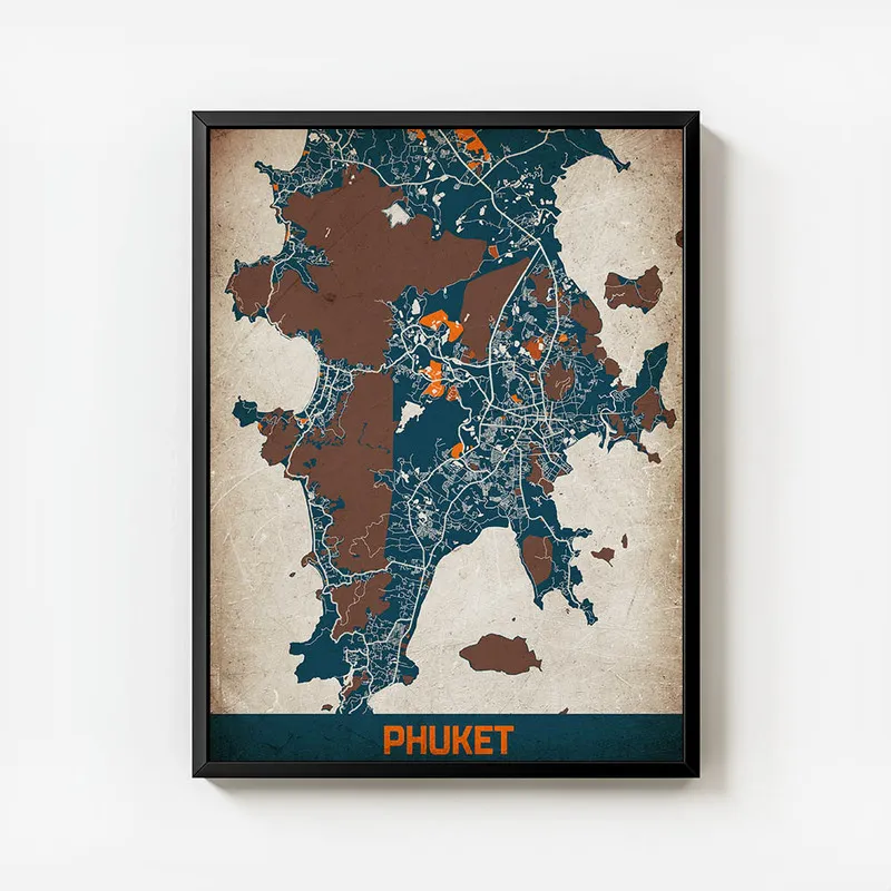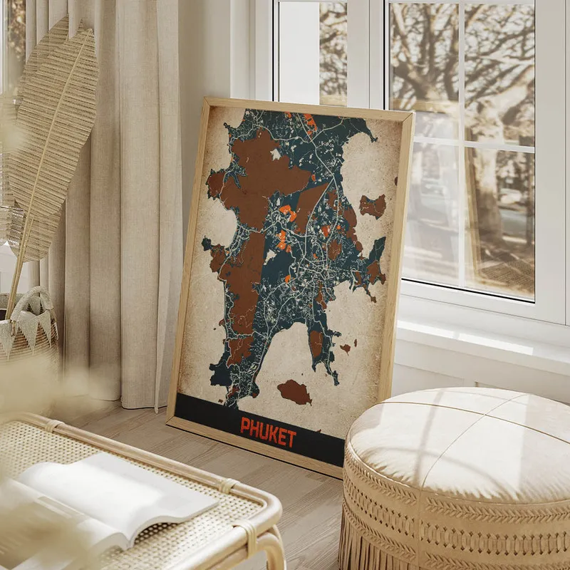 On sent que cette Affiche carte Phuket vintage va ajouter une touche chaleureuse et joyeuse chez vous. Elle mérite clairement une place d'honneur sur vos murs. Alors, prêt à faire le grand saut vers Phuket, même juste avec les yeux ?