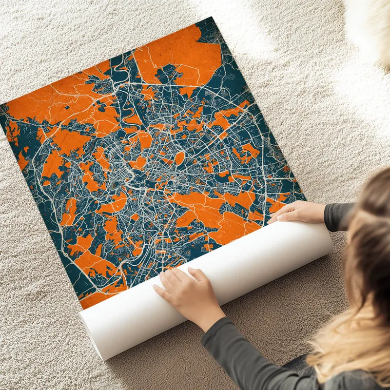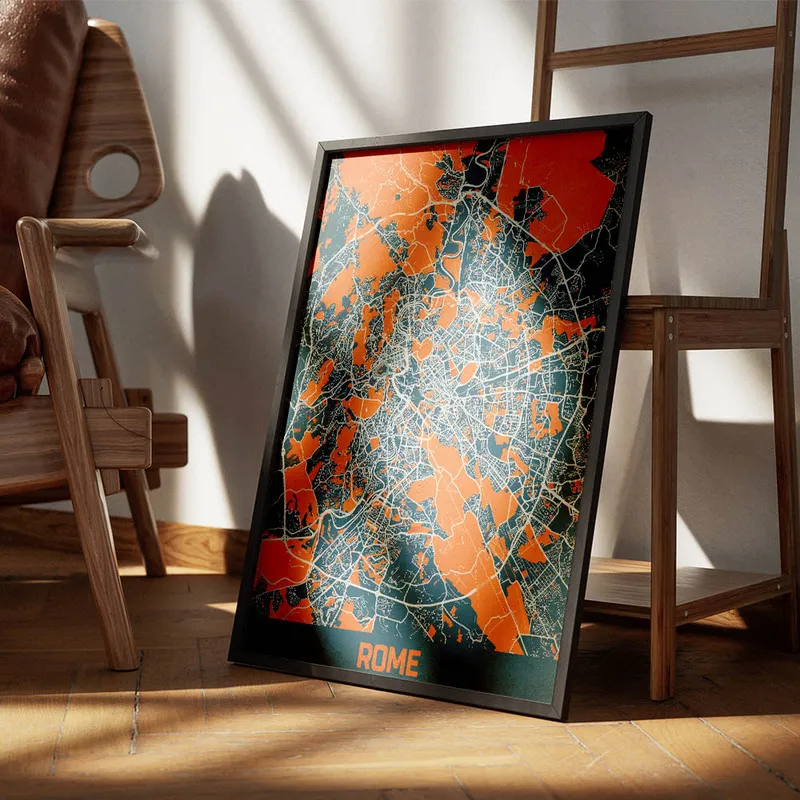 Ce qui est génial, c'est le mélange des détails qui se dessinent sur la carte. Les monuments, les rues, ça nous donne envie de flâner dans chaque coin. On imagine se balader près du Colisée, déguster une vraie pizza sur une terrasse ensoleillée. Ce poster dégage une atmosphère chaleureuse, presque nostalgique, et ça fait du bien. On se dit que même accroché au mur, il nous fait rêver.