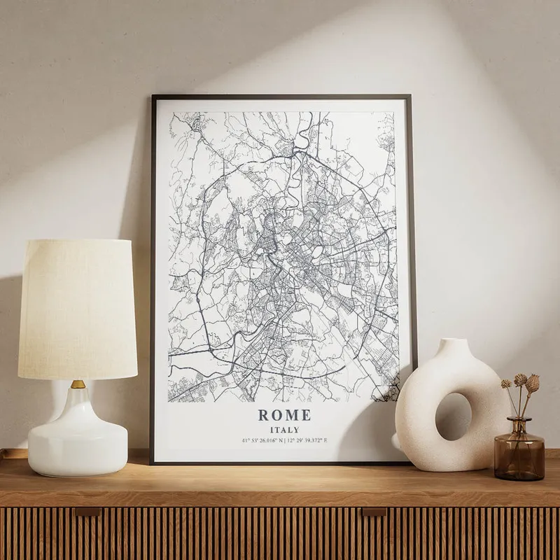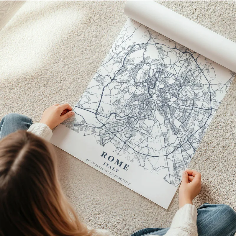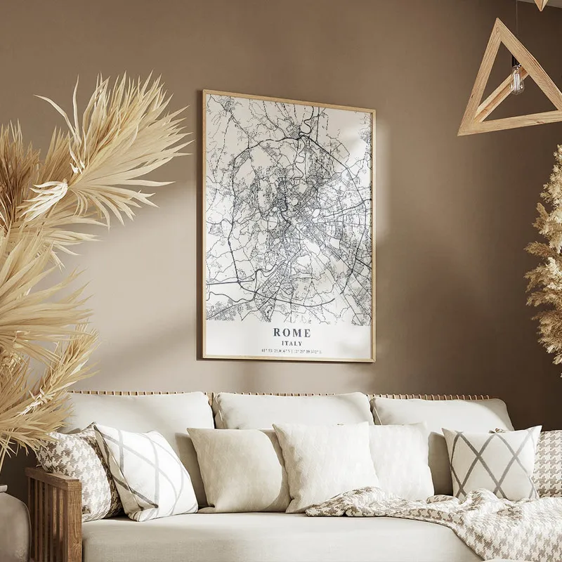 On imagine facilement cette Affiche carte Rome dans un salon, ou même dans un couloir, pour donner du caractère à un espace. Ça fait envie, pas vrai ? En l'accrochant, on invite un petit bout d'Italie chez soi. Et puis si vous aimez le voyage, pourquoi ne pas explorer aussi nos posters sur le thème du voyage ou quelques photographies de paysages qui vous transporteraient ailleurs ?