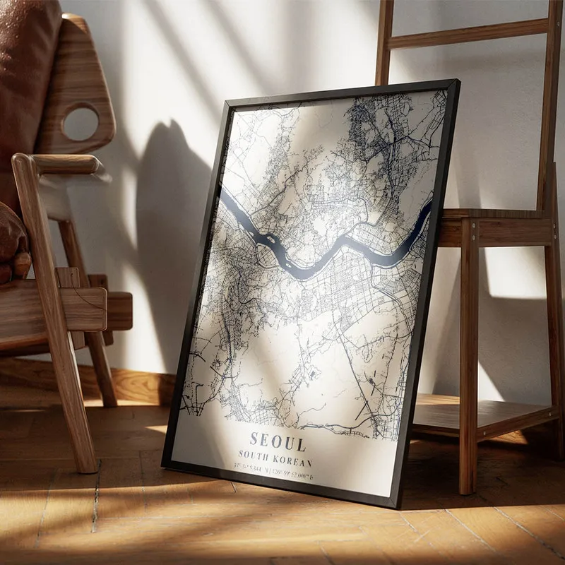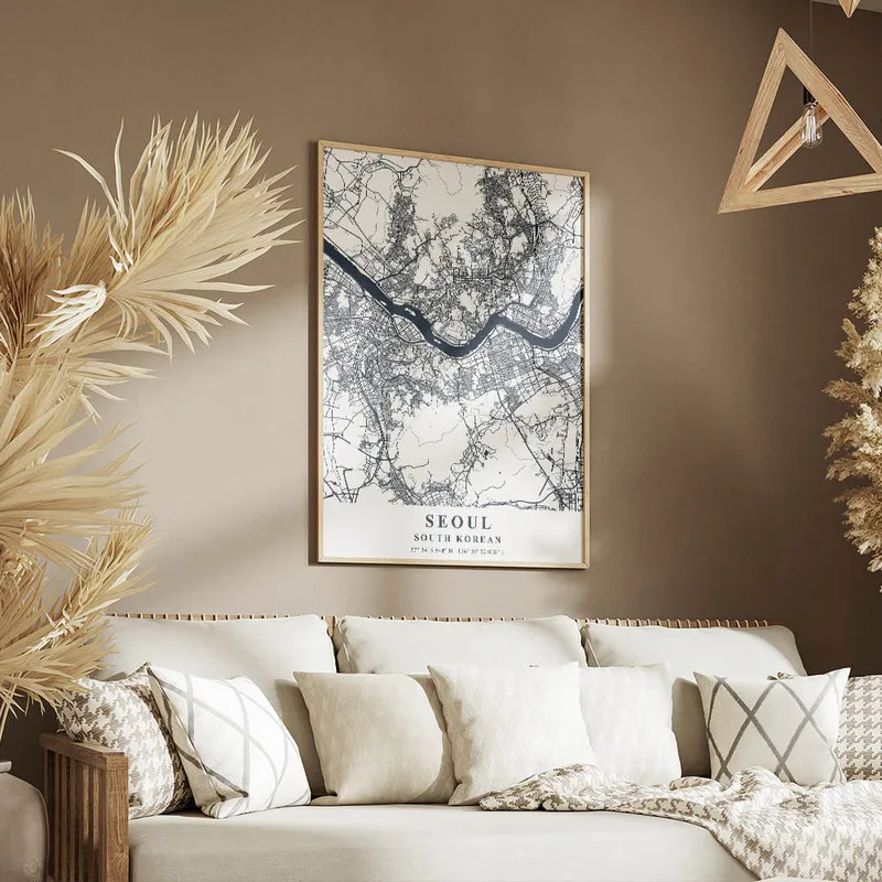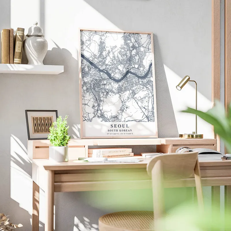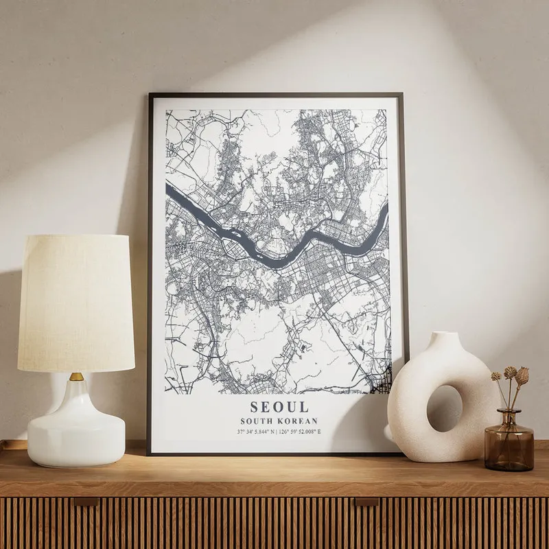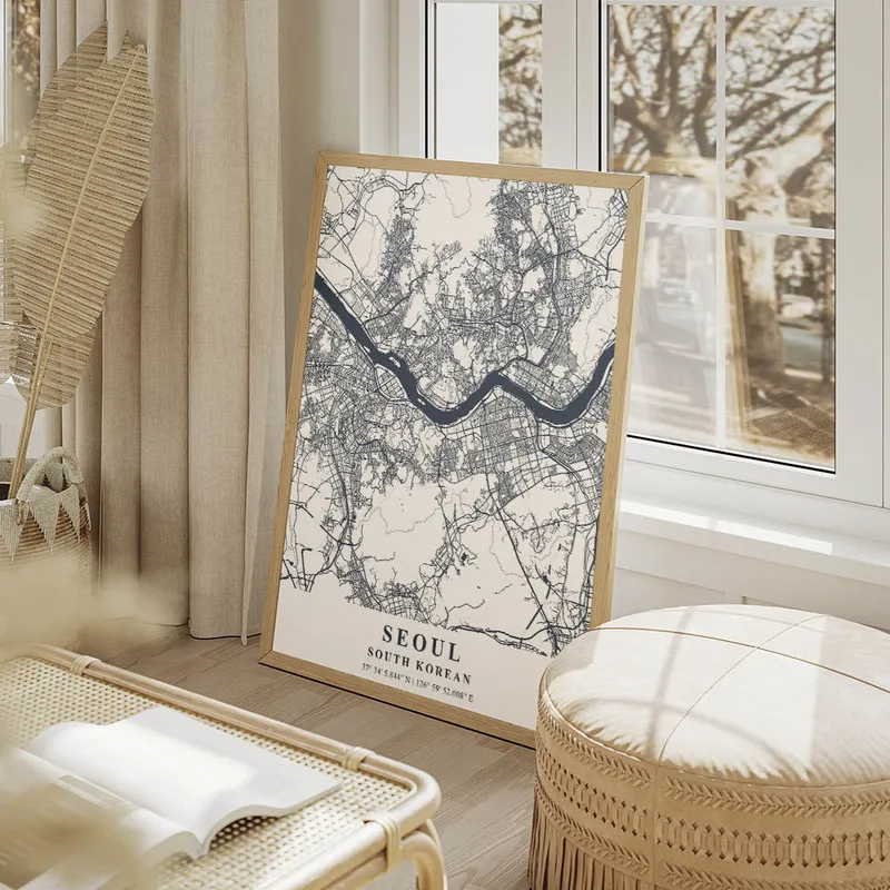 On imagine très bien cette Affiche carte Seoul dans un bureau ou même dans un salon. Ça ouvre la discussion, ça donne envie d'échanger des anecdotes de voyage. Pour celles et ceux qui adorent voyager, ça peut être le point de départ d'un coin déco vraiment sympa. Pourquoi ne pas l'associer avec d'autres affiches de voyage ? On peut jeter un œil aux posters de voyage ou explorer des photographies qui vous rappellent des souvenirs de vos escapades. On vous assure, ça va apporter de la vie à votre intérieur !
