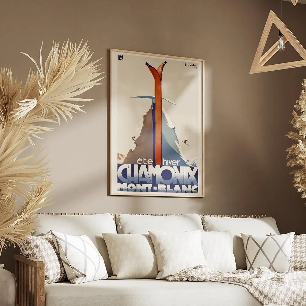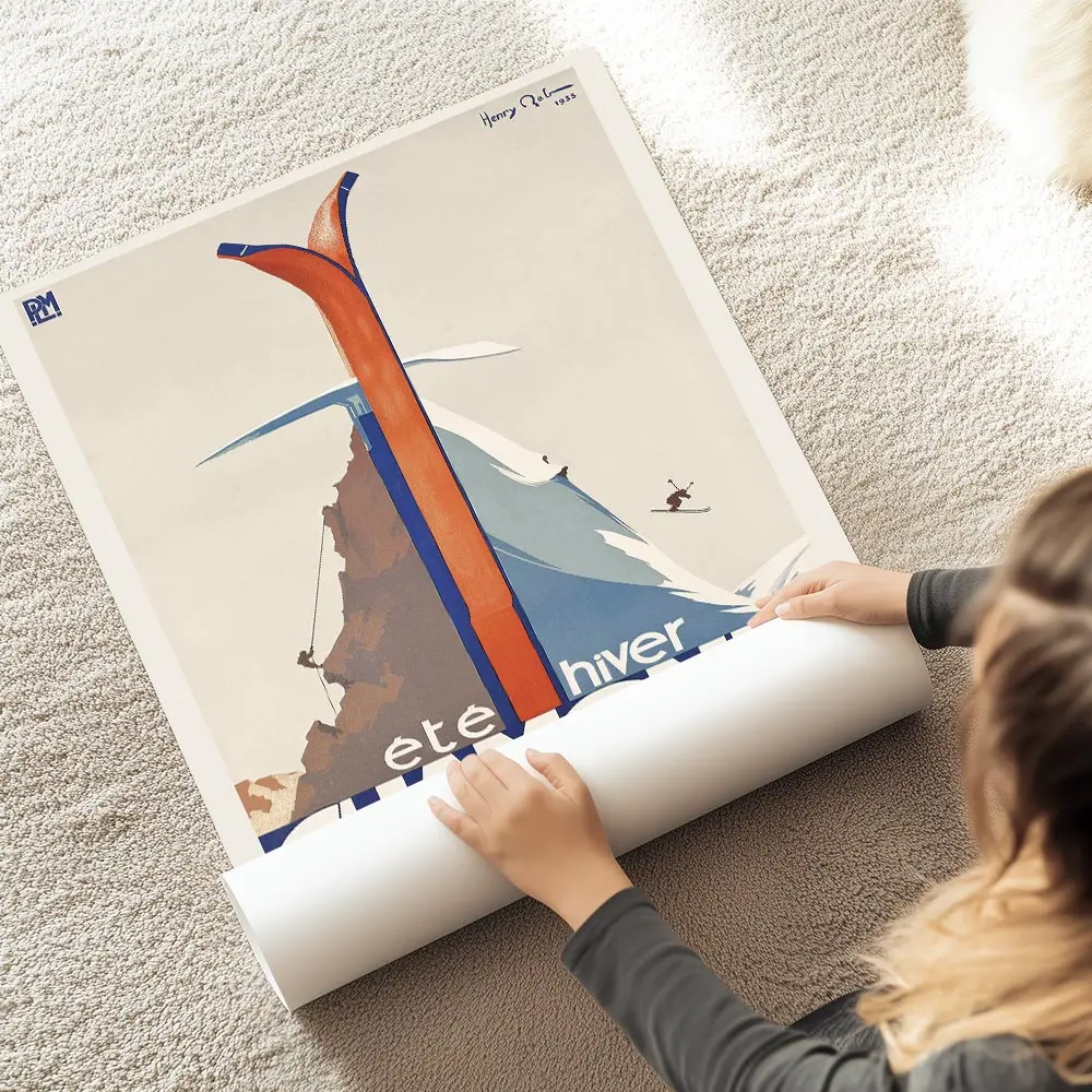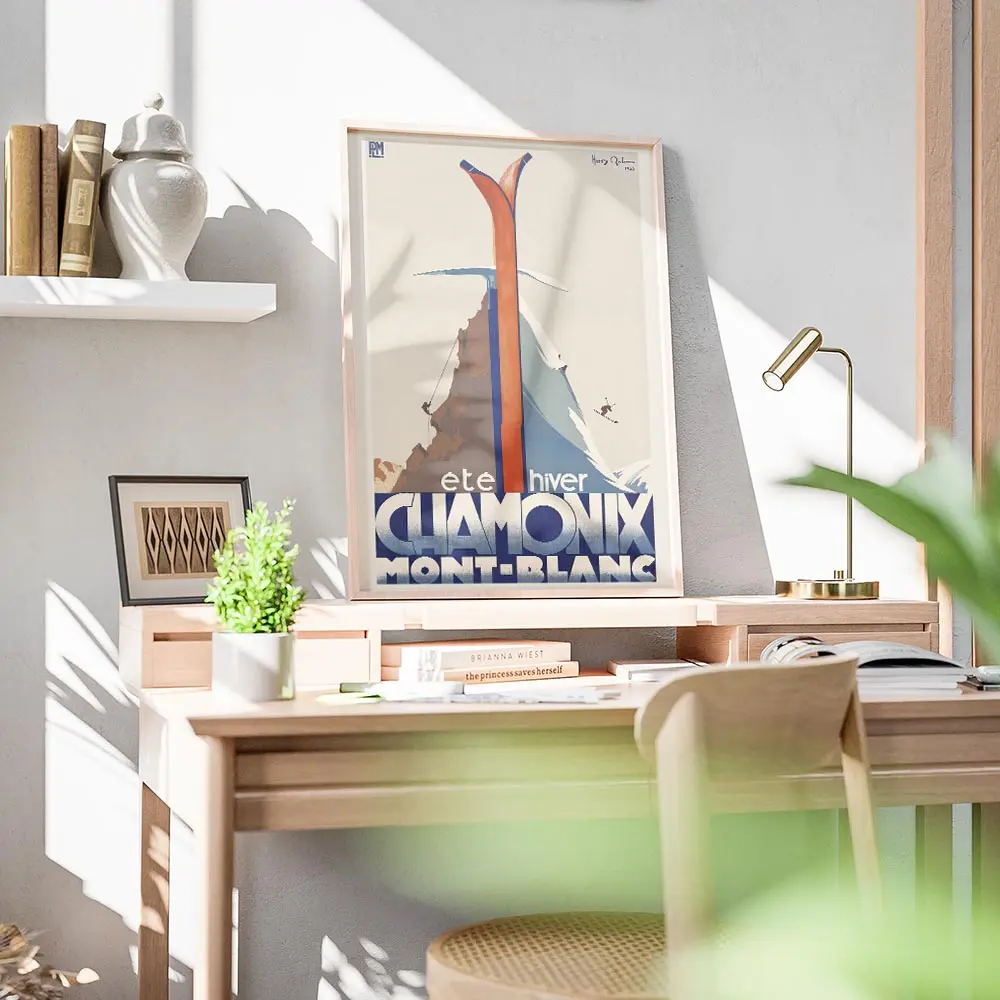 Sur un mur clair, l’affiche fonctionne comme point focal. Avec du bois brut, des plaids et des cadres fins, l’ambiance devient chalet, cosy. Elle colle bien avec une déco vintage ou scandinave légère. Idéal dans une entrée, un salon ou un bureau. Pour explorer d’autres horizons, découvrez nos posters montagnes ou la sélection poster vintage.