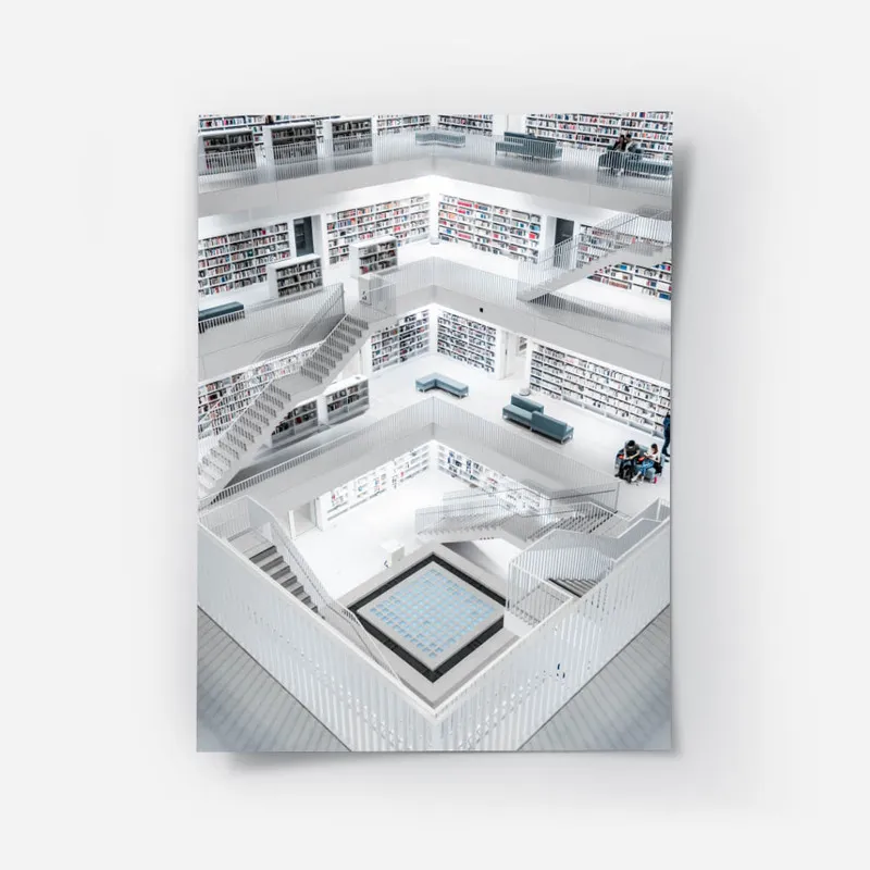 On a vraiment eu un coup de cœur pour le Poster bibliothèque moderne Stuttgart. En le regardant, on ressent tout de suite une atmosphère de tranquillité et de savoir. C'est comme si ce poster nous invitait à plonger dans un monde de livres, de découvertes, et de rêves. Un vrai régal pour les amateurs de lecture, non ?