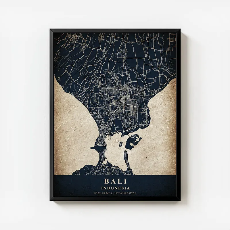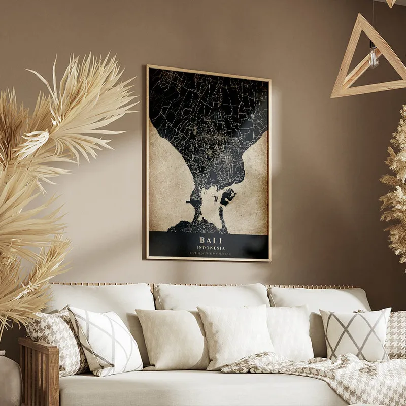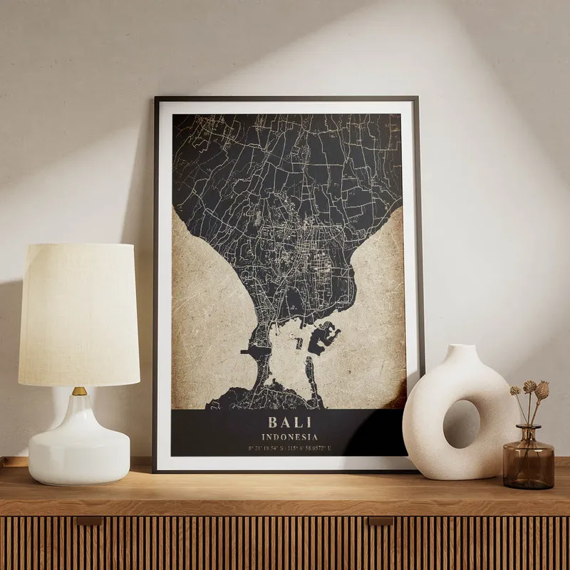 Ce Poster carte Bali vintage, il apporte une note chaleureuse et pleine d'histoires à notre intérieur. En le mettant chez vous, ça ne peut qu'amener de la bonne humeur et faire voyager vos visiteurs par la même occasion. Qui pourrait résister à l'appel d'un petit coin d'Asie, ici-même chez soi ?