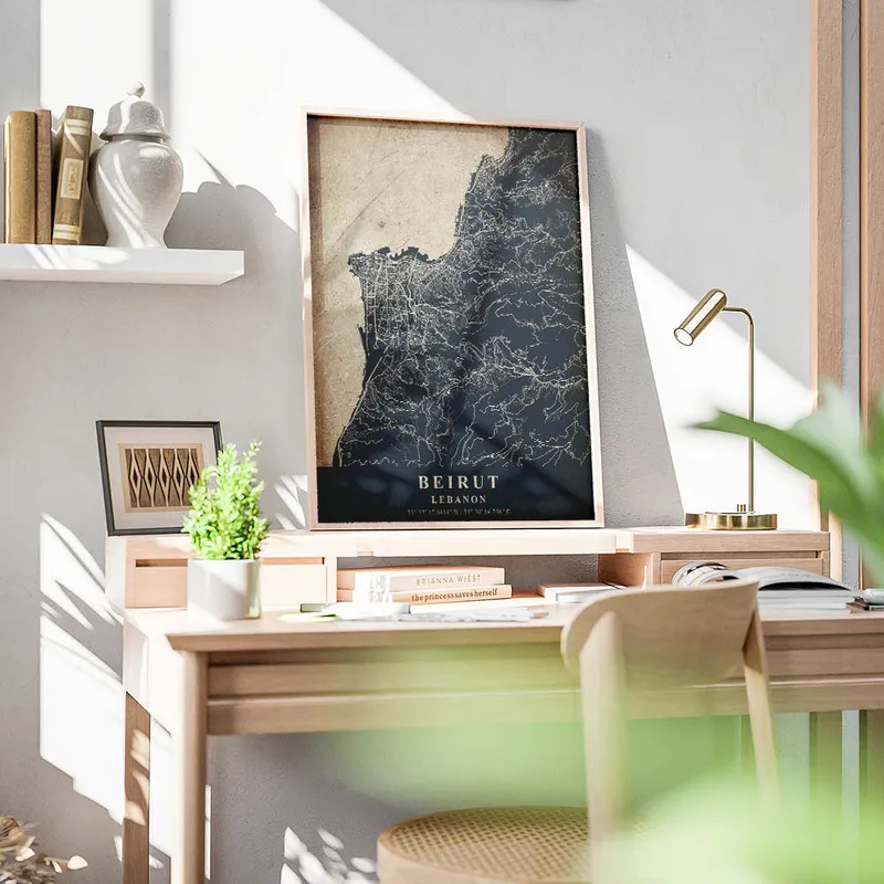 On peut même imaginer ce Poster carte Beirut vintage dans un salon, ou une salle à manger où l'on reçoit des amis. Ça pourrait faire l'objet de belles conversations autour d'un bon repas libanais. Alors pourquoi ne pas l'accompagner avec d'autres affiches vintage ou des cartes vintage pour créer un vrai coin dédié à vos souvenirs de voyage ? On vous recommande de jeter un œil à nos autres affiches et posters, on ne sait jamais quelles autres merveilles vous pourriez y découvrir !
