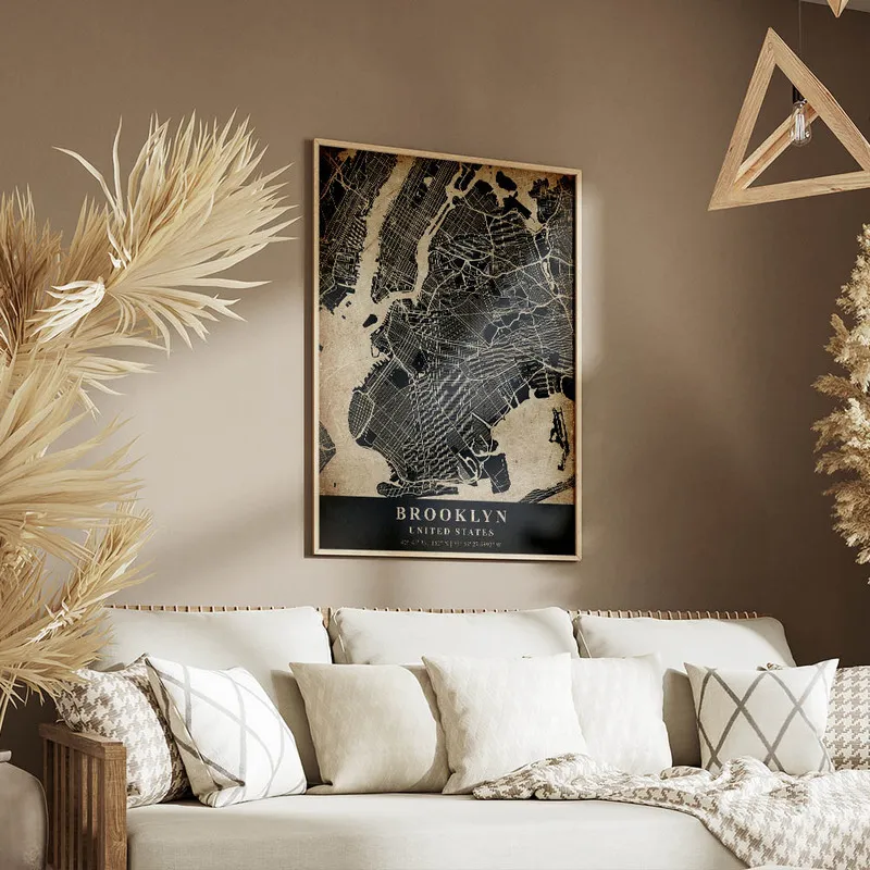 On a vraiment craqué pour le Poster carte Brooklyn vintage. En le voyant, on se sent tout de suite transporté dans les rues animées de Brooklyn, avec son ambiance chaleureuse, un brin nostalgique. Cette affiche, elle évoque des souvenirs, des balades à travers des quartiers emblématiques, et ça, ça parle à tout le monde. Les détails de la carte sont super bien travaillés, et on peut passer un bon moment à découvrir les petites rues, les cafés, et même les parcs.