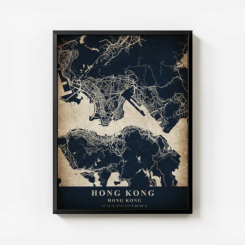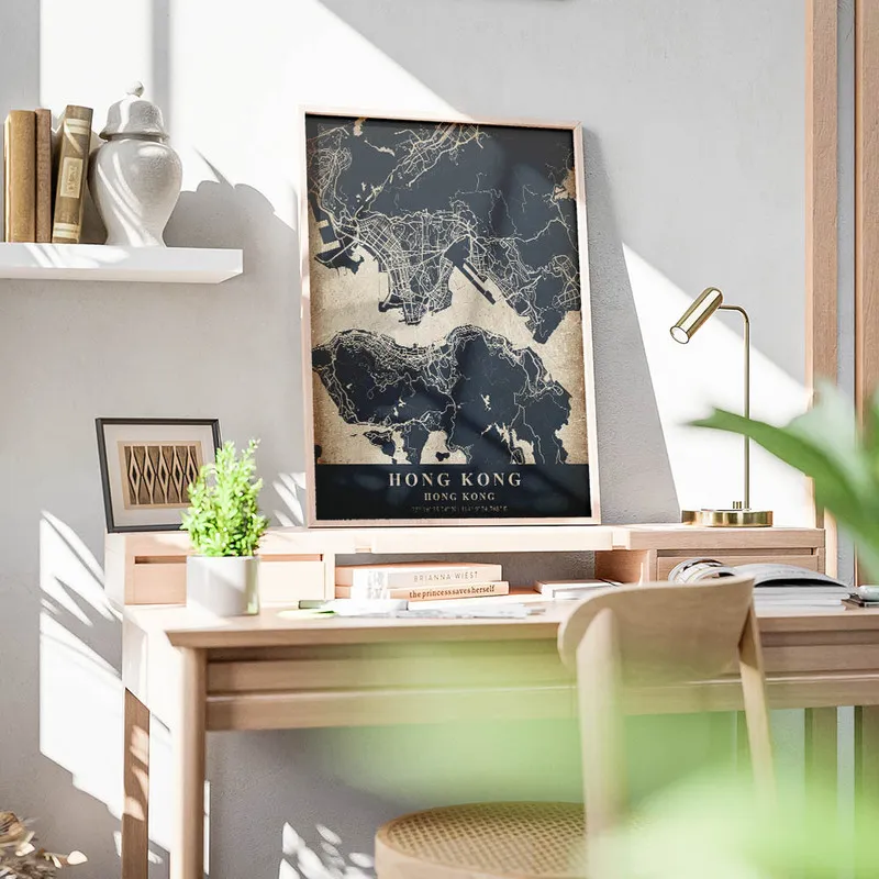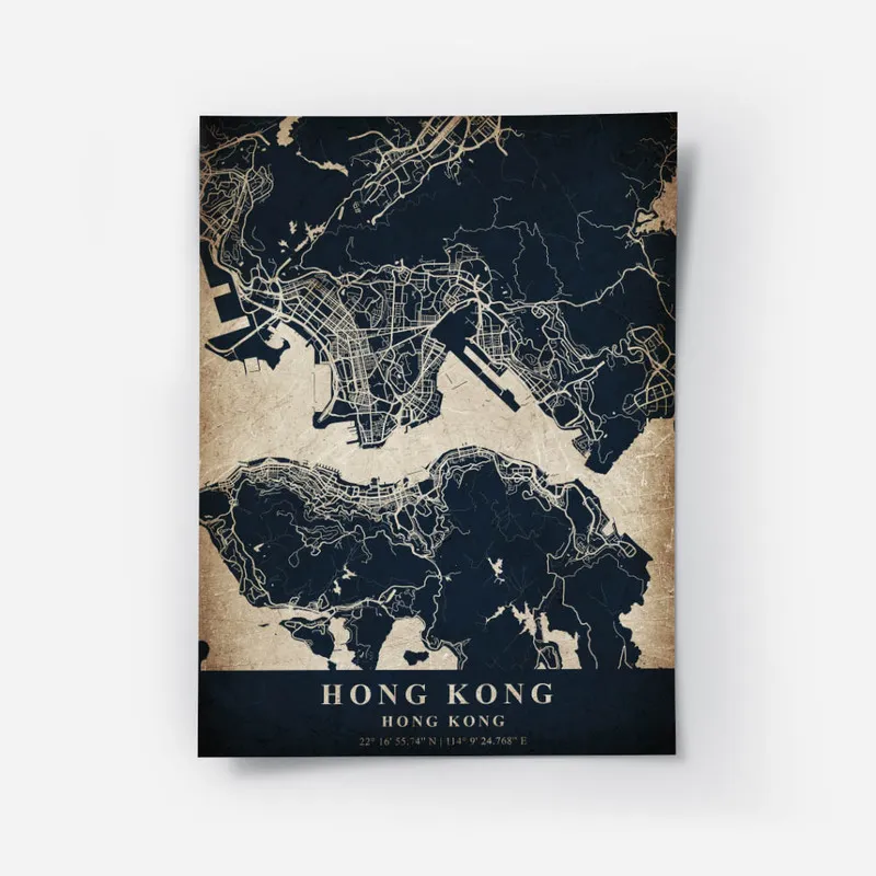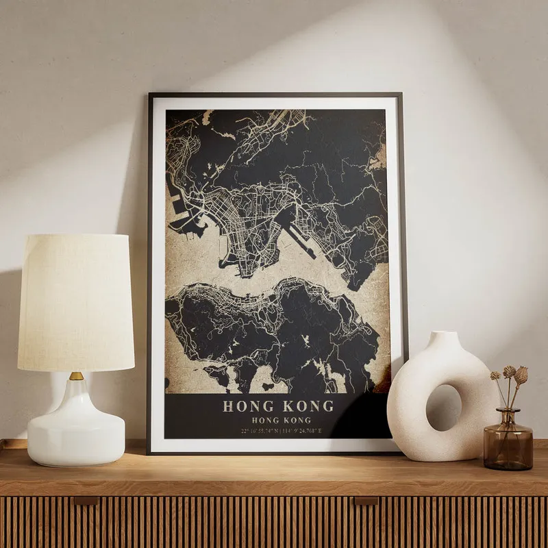 On est complètement sous le charme de ce Poster carte Hong Kong vintage. En le voyant, on ressent tout de suite une nostalgie douce et chaleureuse. Cette carte, elle a cette vibe rétro qui nous transporte dans un autre temps, vous voyez ? On dirait presque qu'elle nous raconte une histoire, celle d'une ville vibrante, pleine de vie et de cultures.