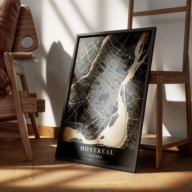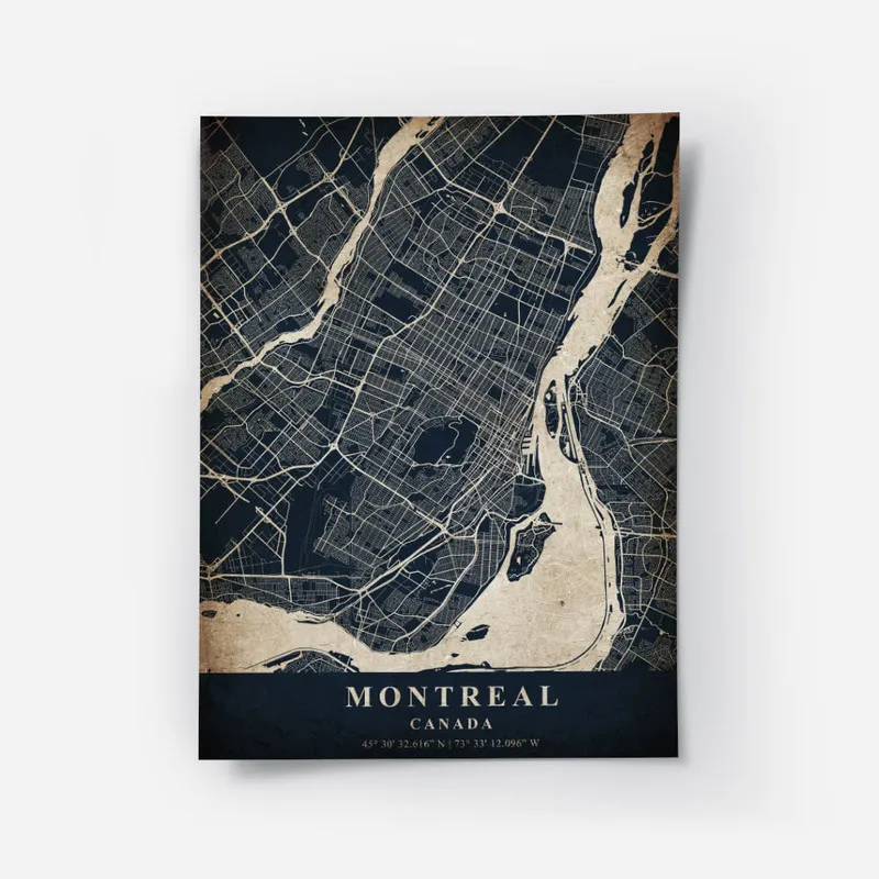 On s'imagine très bien ce Poster carte Montreal vintage dans un salon, ou même dans un coin lecture. Ça pourrait tellement bien se marier avec d'autres affiches qui parlent de voyages, ou des illustrations évoquant la nature. Pourquoi ne pas aussi jeter un œil aux affiches vintage de voyage ou aux paysages naturels qui apporteraient une belle harmonie ?