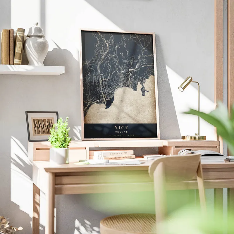 On imagine très bien ce Poster carte Nice vintage dans un salon, ou même dans une cuisine, pour créer une atmosphère conviviale. On adorerait l'associer avec d'autres affiches de paysages ou des posters de plages pour composer une galerie de voyage. Ça donnerait un côté lumineux et joyeux à n'importe quelle pièce. Alors, si vous aimez le style vintage et les ambiances estivales, n'hésitez pas à jeter un œil aux affiches de paysages ou aux posters sur les plages. Ça pourrait vraiment bien compléter votre déco !