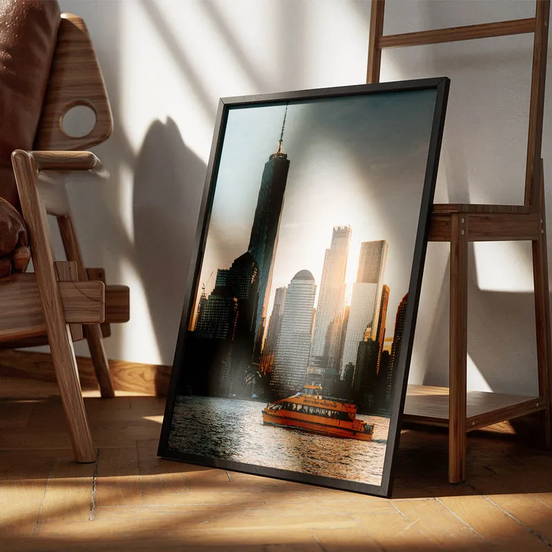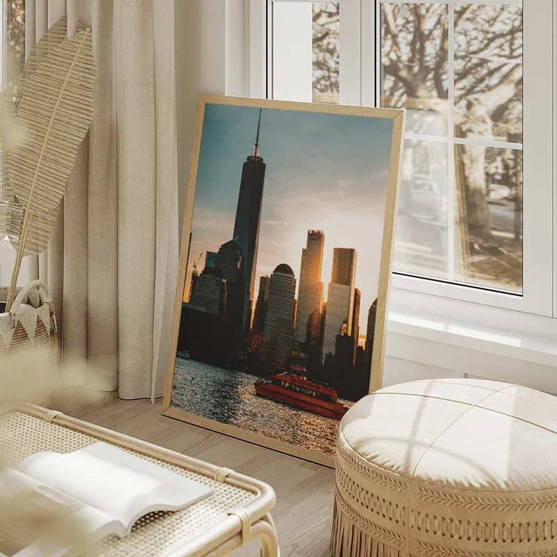 Ce genre de poster nous plonge instantanément dans l'ambiance new-yorkaise, où chaque coin de rue est une promesse d'aventure. La douceur du coucher de soleil nous évoque aussi ces moments de pause, de réflexion, quand la journée s'éteint. On imagine déjà le poster dans un salon ou même un bureau, apportant une touche de chaleur et de dynamisme.