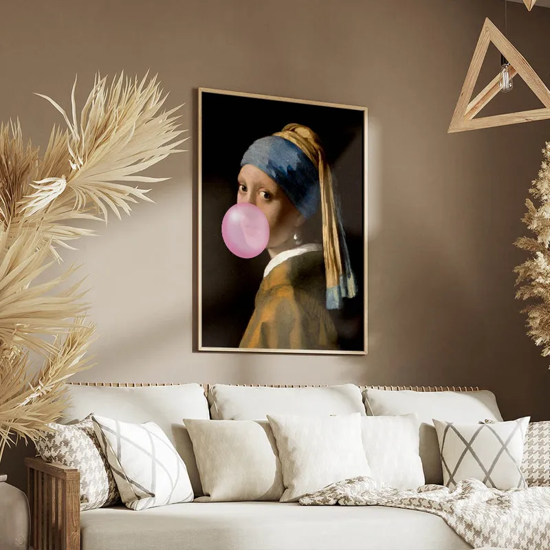 Franchement, ce Poster jeune fille à la perle chewing-gum mérite sa place chez vous. Il réveille l'espace tout en y ajoutant une belle dose de fun. On valide totalement cette idée pour égayer n'importe quelle pièce !