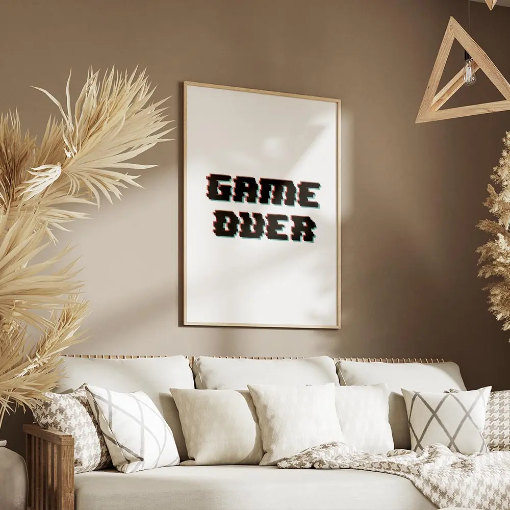 affiche avec le texte game over en lettres pixelisees noires ombres rouges et ve.webp