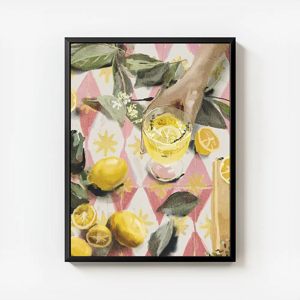 On accrochera cette affiche dans une cuisine, un coin repas ou une terrasse couverte. Associe-la à des meubles en bois clair, des plantes vertes et de la vaisselle blanche. Pour rester dans le thème aquarelle, joue les pastels: jaune pâle, vert menthe, bleu ciel. Pour voir d’autres inspirations, découvre nos aquarelles et affiches autour des boissons avec aquarelles et posters boissons.