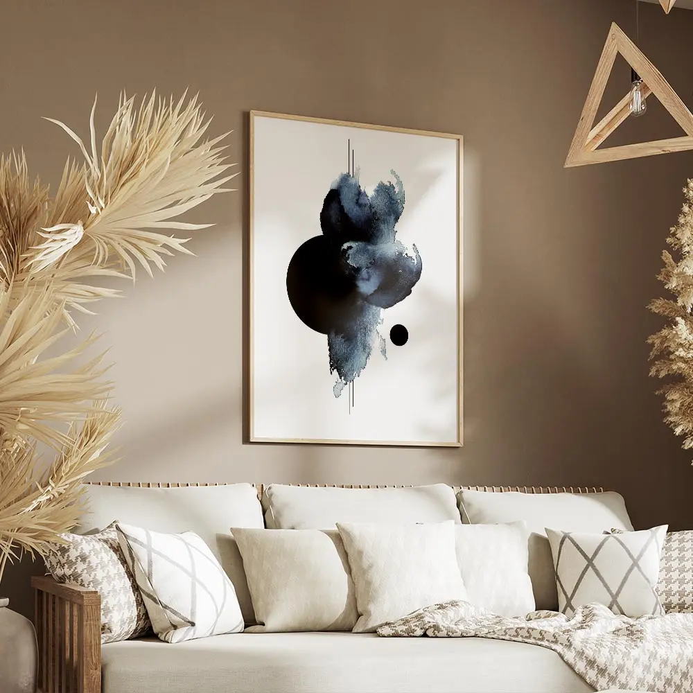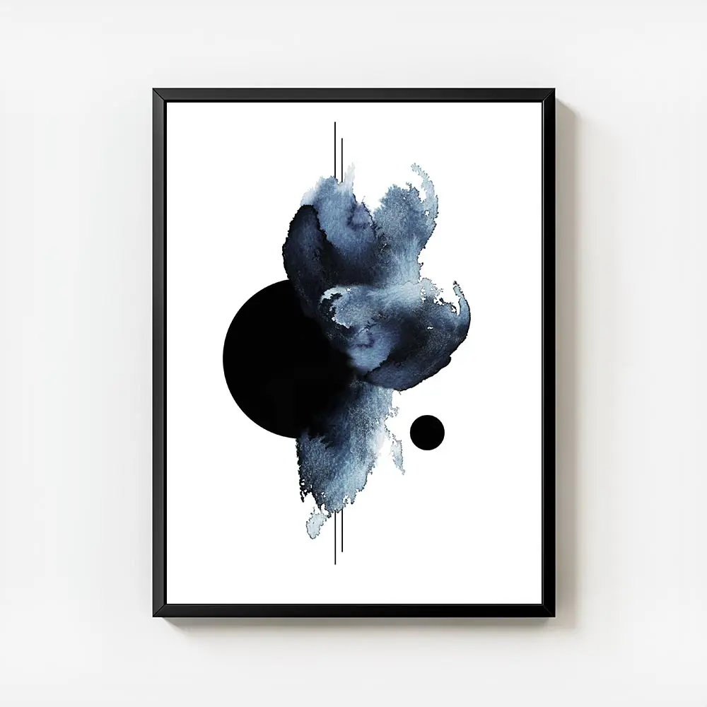 affiche dart abstrait formes aquarelle bleues et noires avec des cercles sur toi.webp