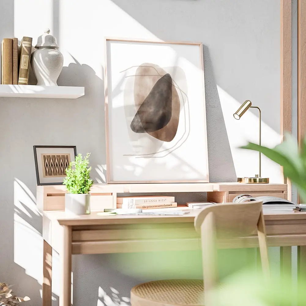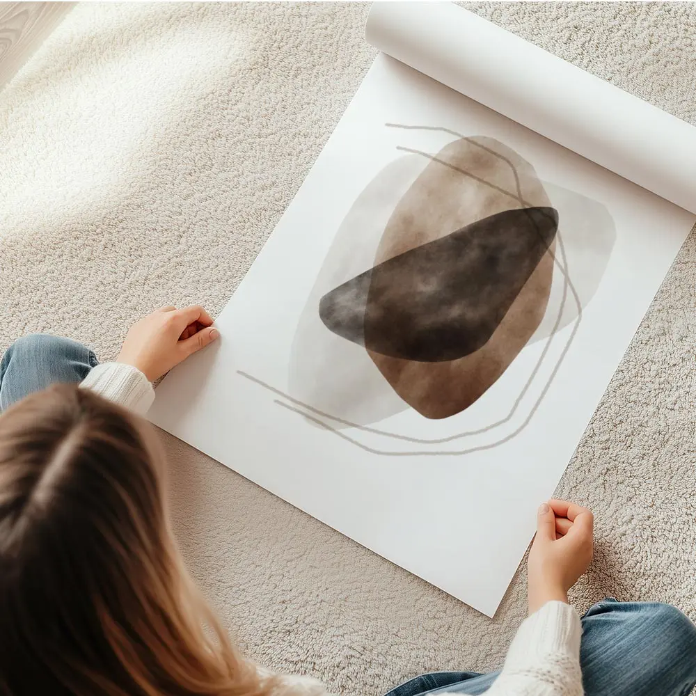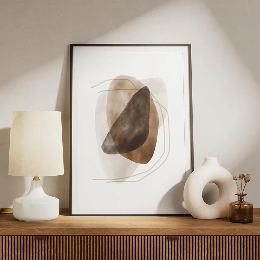 Sur un mur blanc ou pierre, les tons ressortent immédiatement. Associe ce poster à des objets en bois clair, un tapis neutre et des coussins ocre. Pour un mur galerie, mélange avec des pièces d’art abstrait ou des impressions en aquarelle.