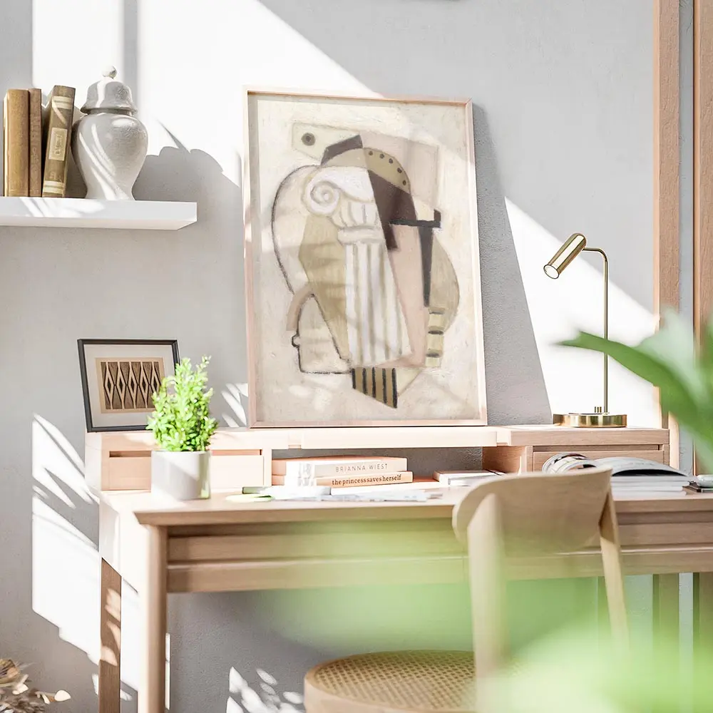 affiche abstraite cubiste aux formes geometriques beige blanc casse et marron ev.webp