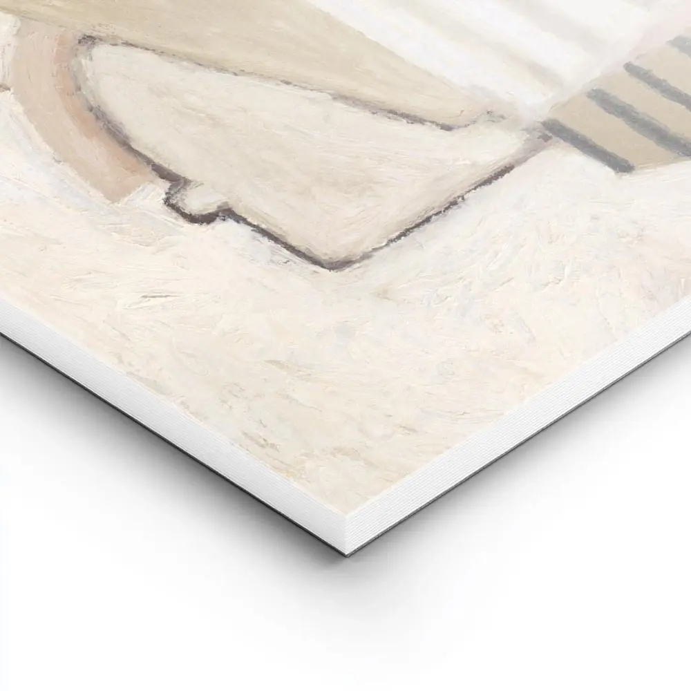 Ce Affiche abstraite cubiste beige marron montre des formes géométriques anguleuses superposées, des surfaces planes en beige, blanc cassé et marron, et des contrastes nets entre zones claires et zones plus foncées. On voit des grands blocs rectangulaires, des petits rectangles imbriqués et des angles qui se croisent, le tout dans une composition qui paraît découpée, presque sculptée.