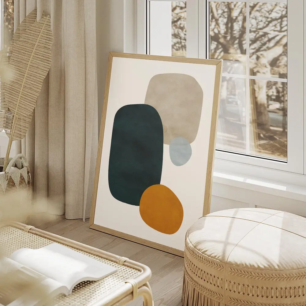 Ce poster s’accorde bien avec des murs blancs, crème ou bleu clair. On l’imagine au-dessus d’un canapé clair, près de coussins beige et d’un tapis naturel. Il colle au style minimaliste, scandinave ou contemporain. Pour compléter, jeter un œil à notre sélection d’art abstrait ou parcourir nos posters et affiches.