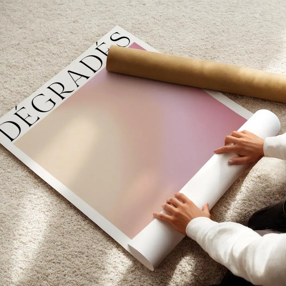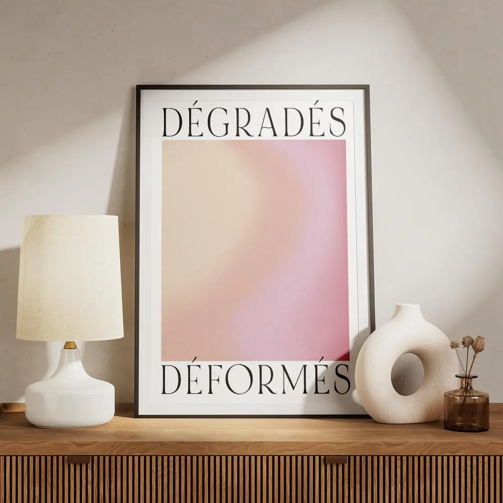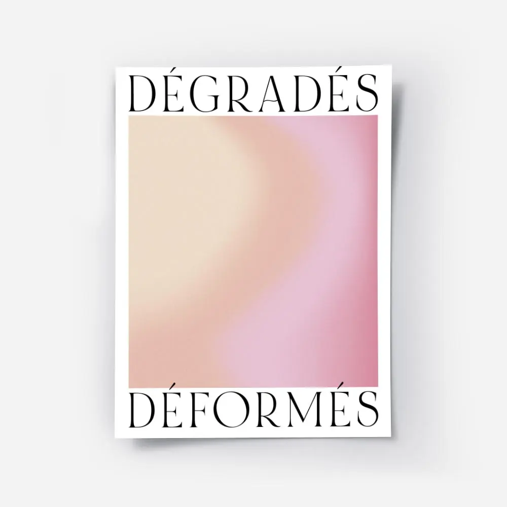 Ce poster Affiche dégradé orange rose jaune pose une atmosphère douce et solaire. On voit un passage de l’orange vers le rose puis le jaune. La surface montre une texture granuleuse qui donne du relief. Les teintes restent chaudes, saturées, presque lumineuses.