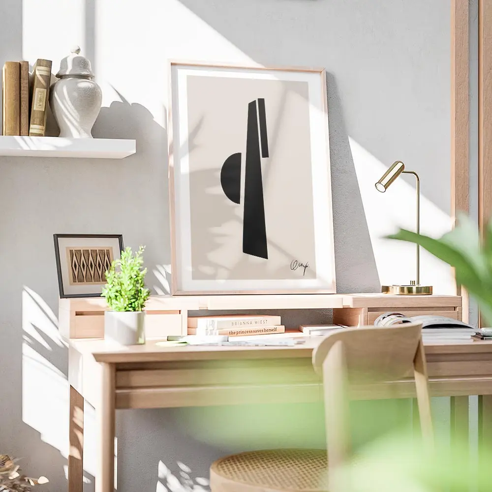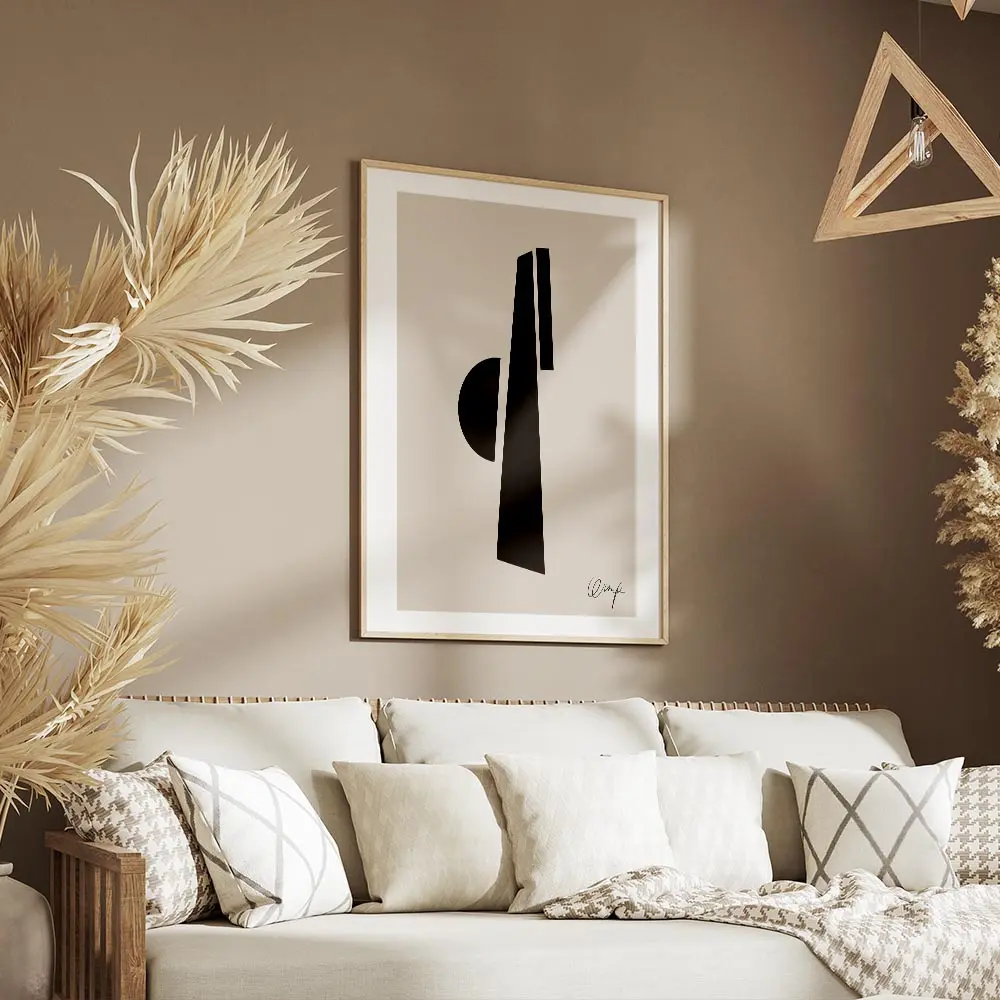 Sur un mur blanc ou en bois clair, les noirs ressortent bien. On conseille un cadre fin noir pour garder la force du graphisme. Ce poster s’accorde avec une ambiance scandinave, contemporaine ou minimaliste. Pour pousser l’idée, découvrez nos sélections art minimaliste et graphisme.