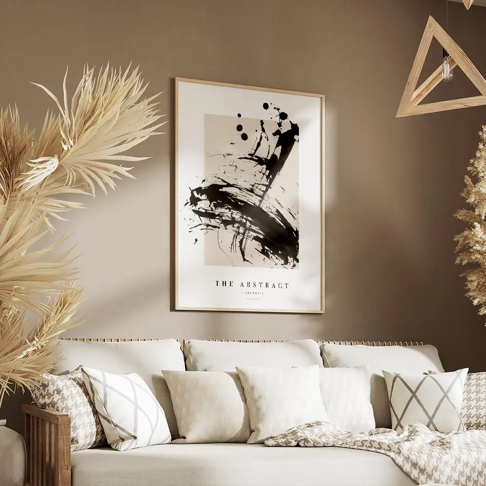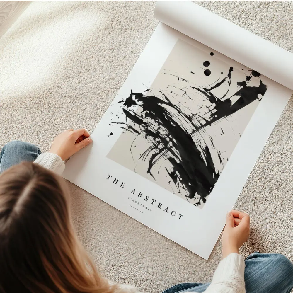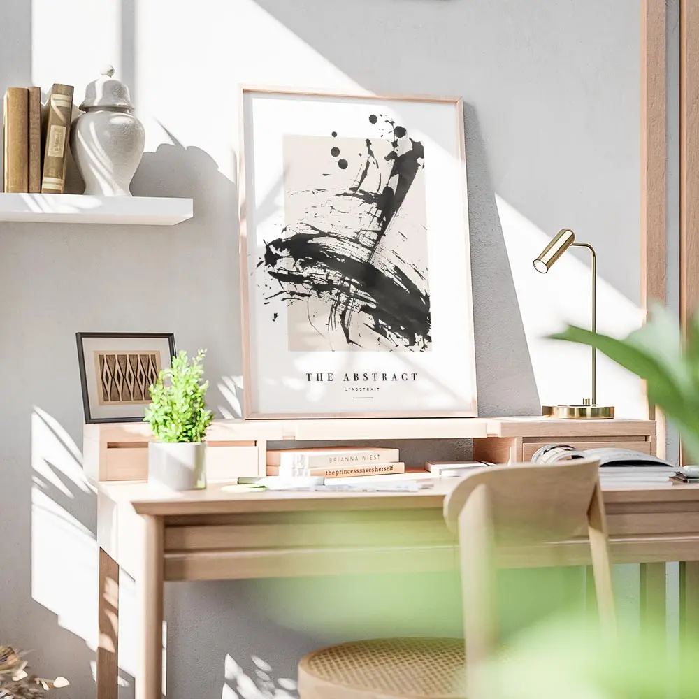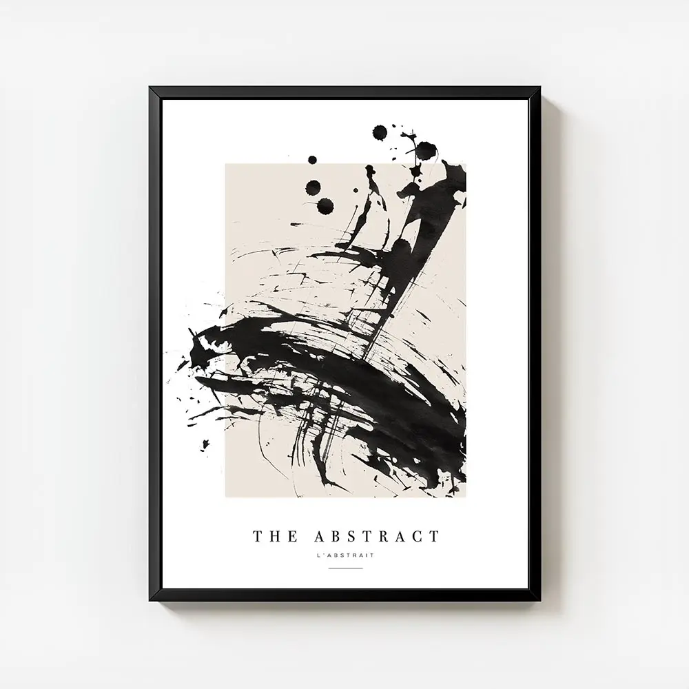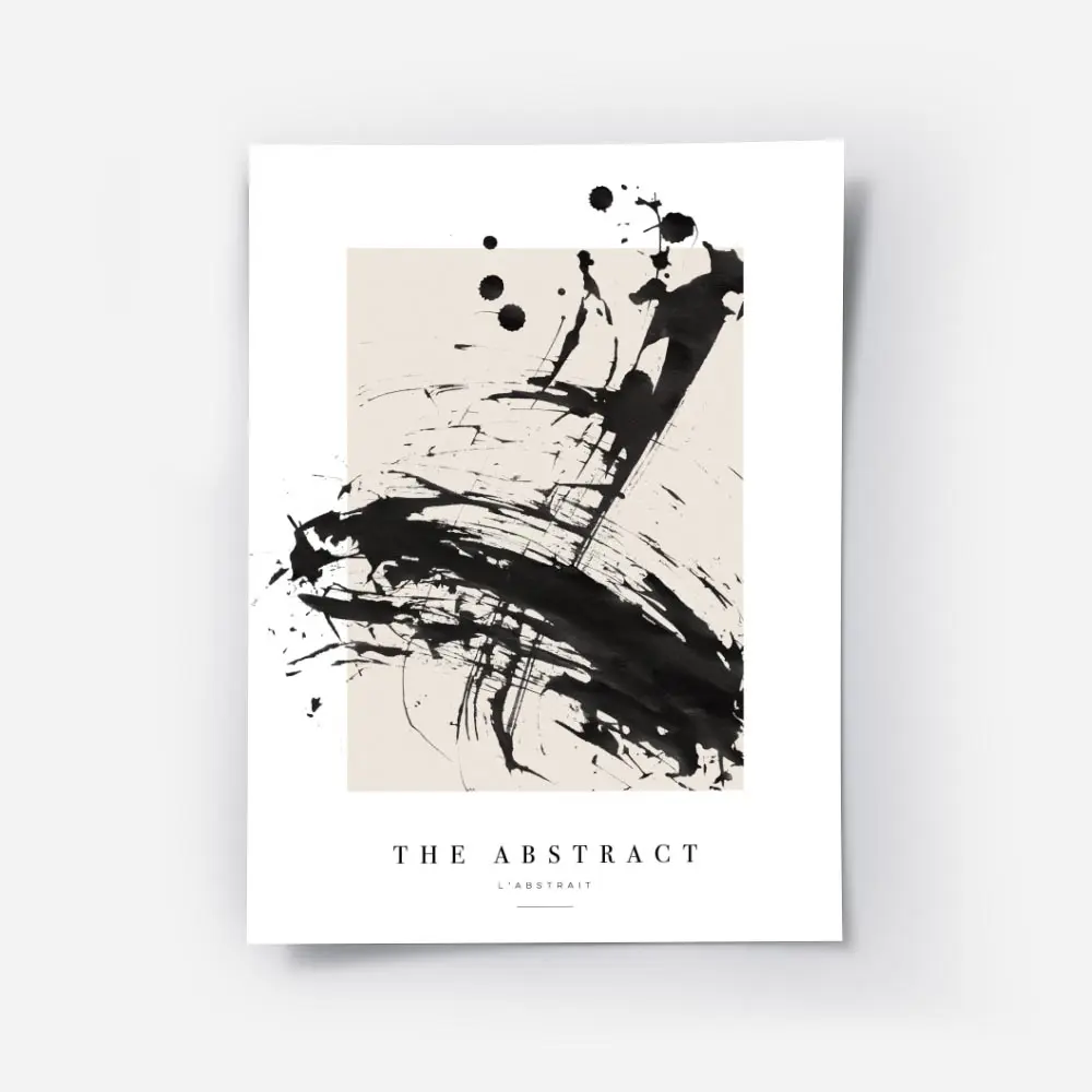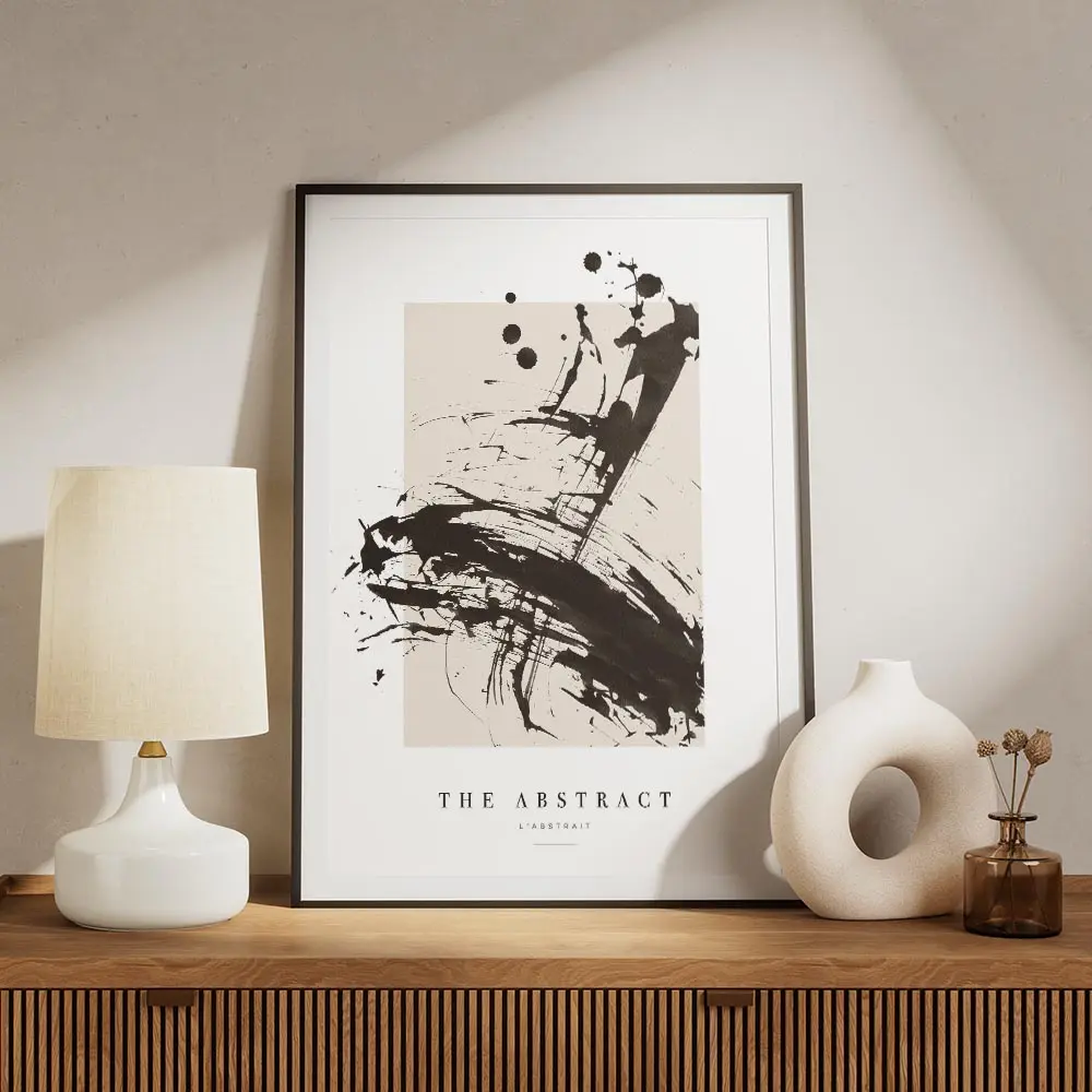 Sur un mur blanc ou crème, les noirs ressortent fort. On peut encadrer l’affiche avec un cadre fin noir ou bois clair, ajouter une lampe industrielle et une plante verte pour adoucir. Ça fonctionne dans un salon, un bureau ou une entrée, avec une déco minimaliste ou style industriel. Pour aller plus loin, regarder nos sélections art abstrait et posters noir et blanc.
