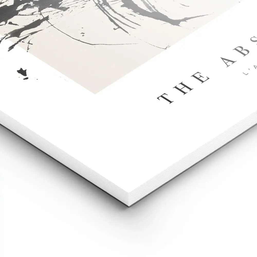Cette Affiche éclaboussures peinture noire beige révèle un contraste saisissant entre un fond beige chaud et des jets de peinture noirs. On distingue une grande tache centrale, des éclaboussures plus petites qui jaillissent autour, et quelques coulures fines qui glissent vers le bas. L’équilibre entre vide et marque crée une composition graphique, simple et énergique.