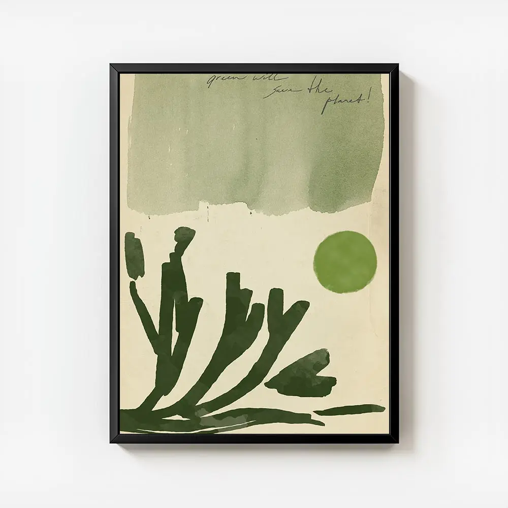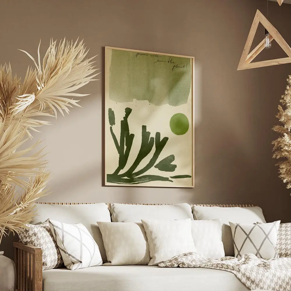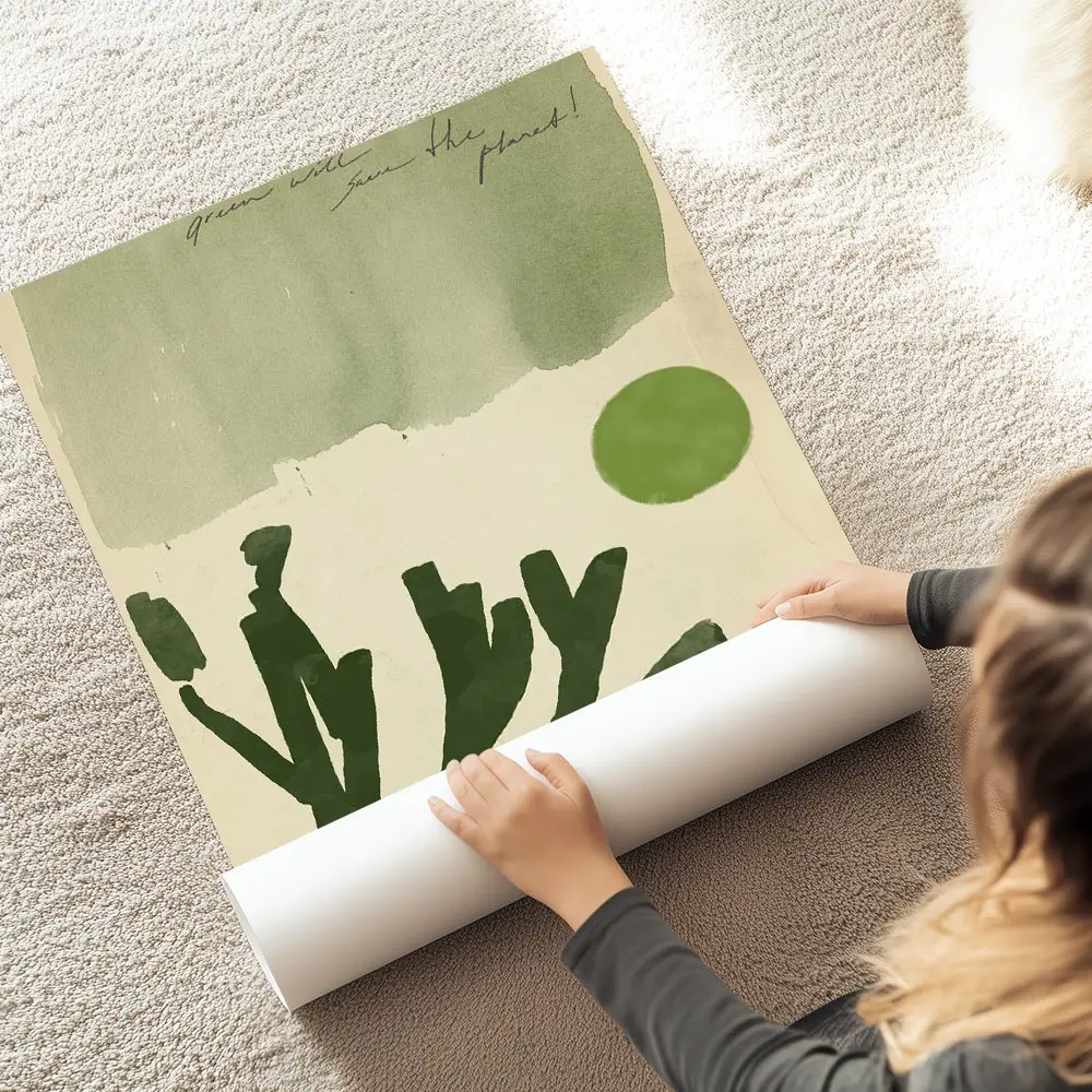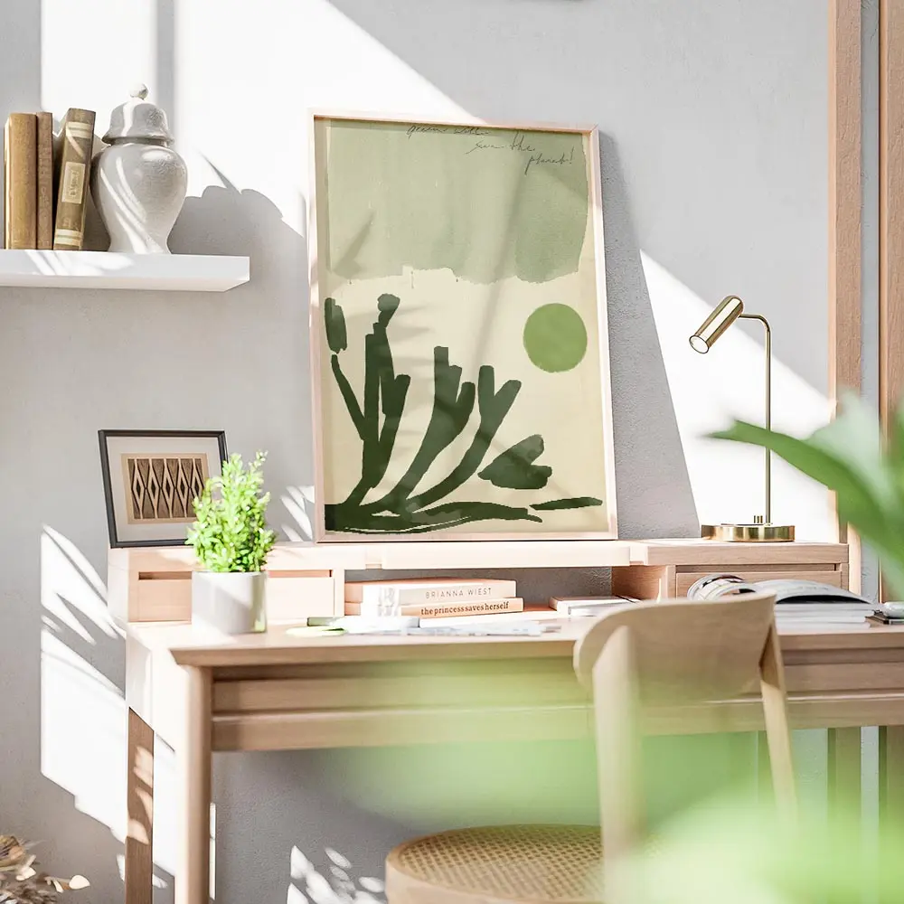 On l'accroche sur un mur blanc pour que les verts respirent. On associe ce poster à des cadres en bois clair, des plantes en pot et des textiles naturels. Il s'intègre bien dans une déco minimaliste, botanique ou scandinave. Idéal pour une entrée ou un salon.