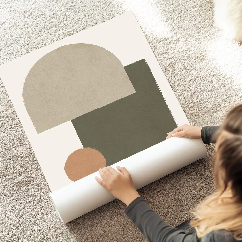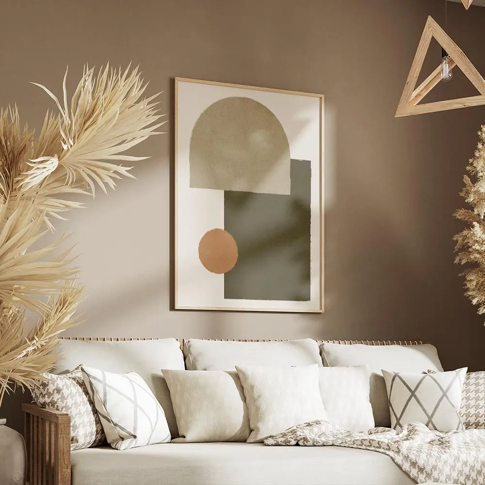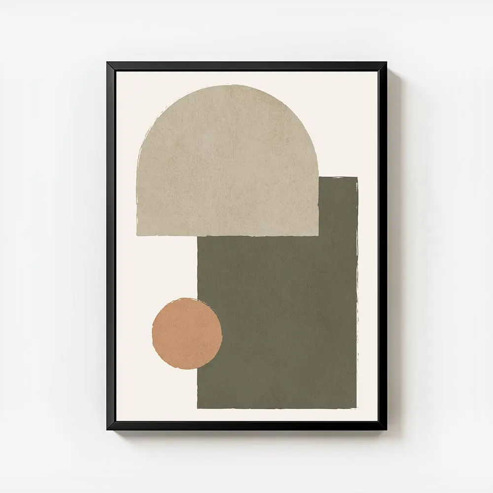 Affiche formes géométriques beige vert orange, un équilibre sobre