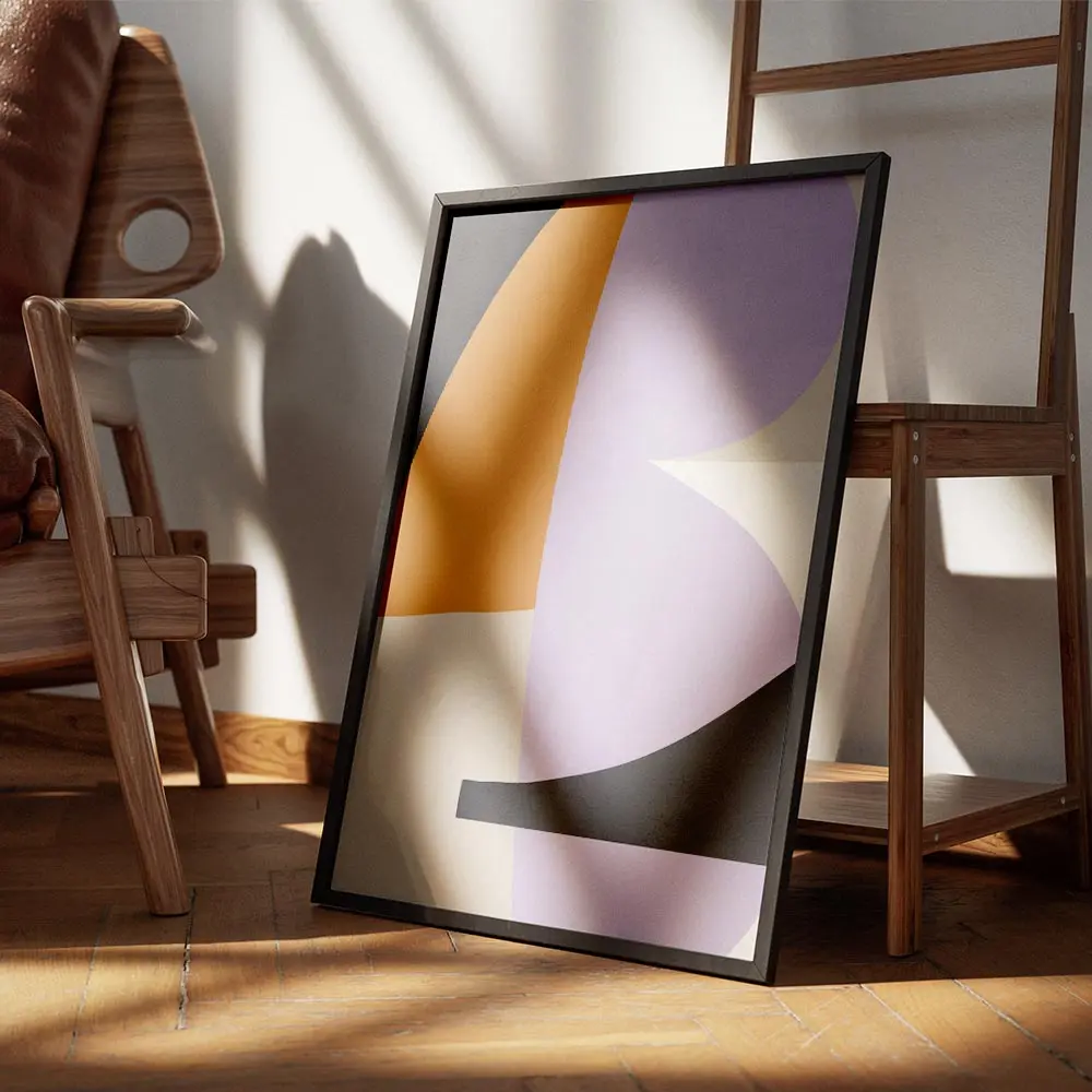Ce poster fonctionne bien avec des murs blancs ou crème pour garder la douceur. Associer des coussins beige et des accessoires orange pour rappeler les touches vives. Pour une ambiance moderne, choisir un cadre fin en bois clair ou noir. Pour voir d’autres pièces dans ce style, jeter un œil aux collections art abstrait ou graphisme.