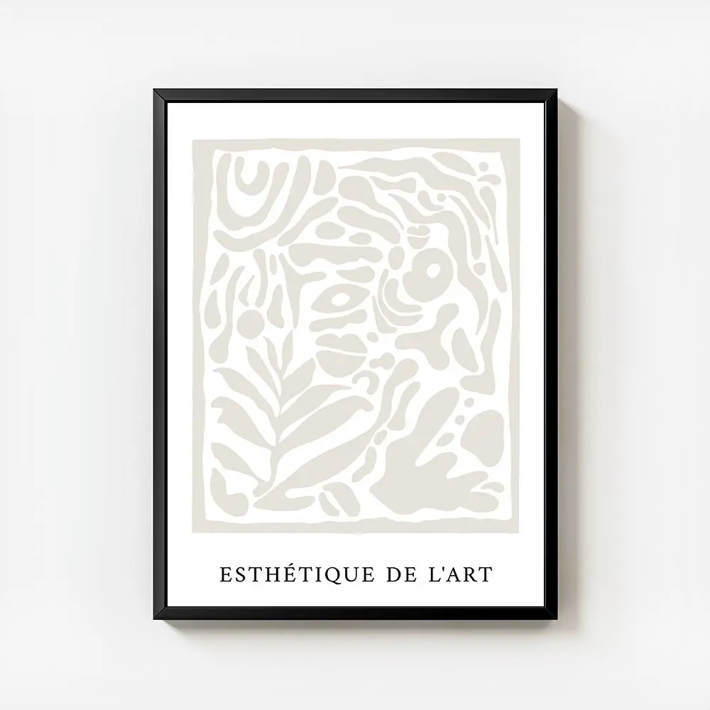 Cette Affiche formes organiques beiges sur fond blanc donne une impression douce et contemporaine. On voit des formes organiques beige clair posées sur un fond blanc net. Les contours restent arrondis et les surfaces paraissent unies. L’ensemble respire, il y a beaucoup d’espace vide qui calme le regard.