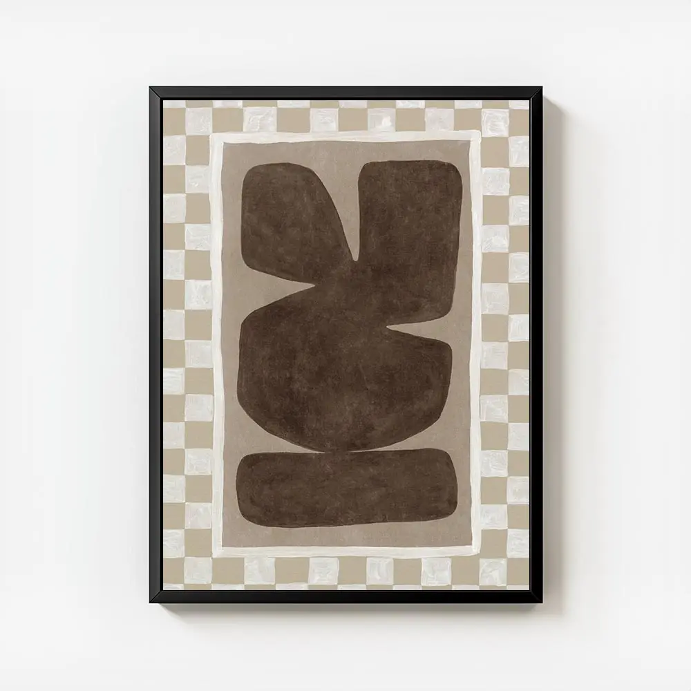 Ce Affiche formes organiques marron fond beige impose une présence discrète et apaisante. On voit un fond beige chaud, presque papier, sur lequel s’étalent plusieurs formes organiques marron. Les formes ont des bords arrondis, des tailles différentes, et elles s’équilibrent sans se toucher. L’ensemble respire, simple et calme, avec un rendu qui reste très naturel.