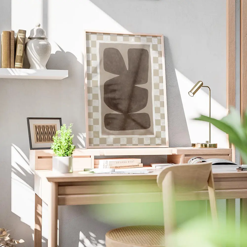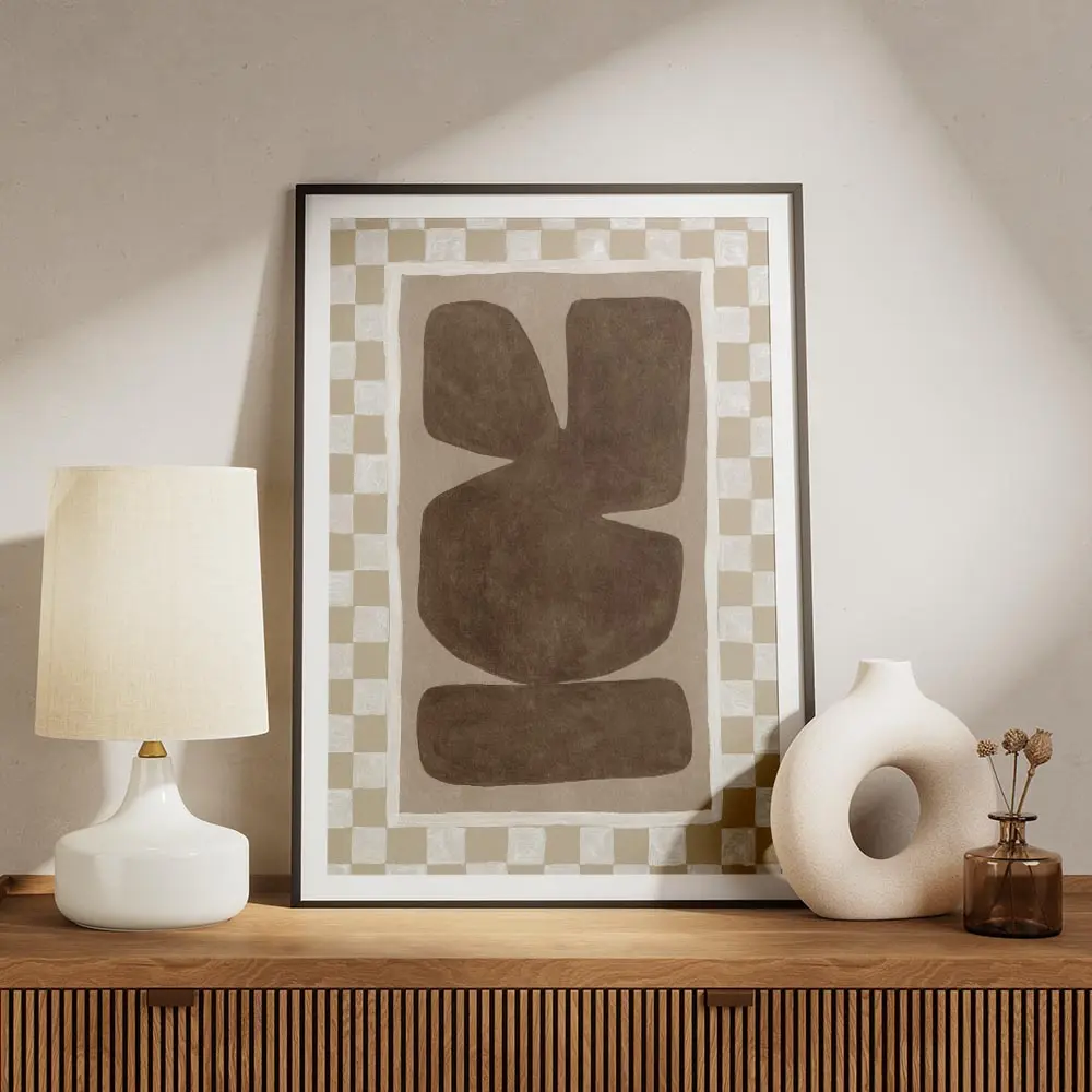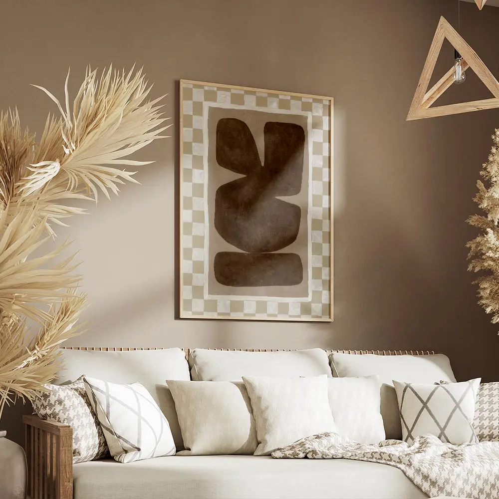 Ce poster fonctionne bien avec du bois clair, des textiles écru et des plantes vertes pour créer une ambiance chaude et moderne. Il s’intègre au style scandinave, minimaliste ou bohème épuré. Idéal en grand format ou en petit groupe sur un mur, il apporte chaleur et calme. Pour voir des idées proches, explorez nos sélections art abstrait et art minimaliste.