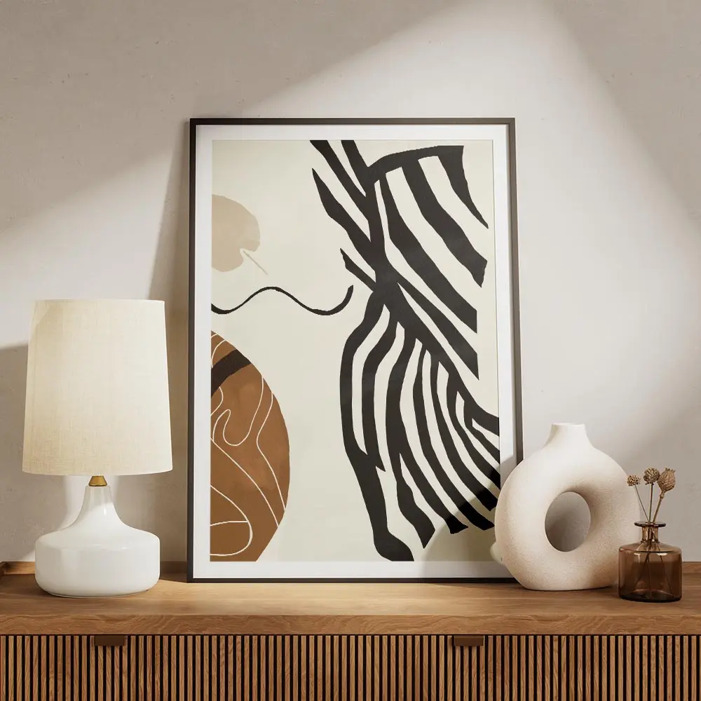 On accroche cette affiche sur un mur blanc ou crème pour garder l’effet lumineux. Elle fonctionne avec du bois clair, des tissus naturels et des cadres fins noirs. Idéal pour un salon, une chambre ou un bureau minimaliste. Pour aller plus loin, découvrez nos sélections d’art abstrait ou d’art minimaliste.