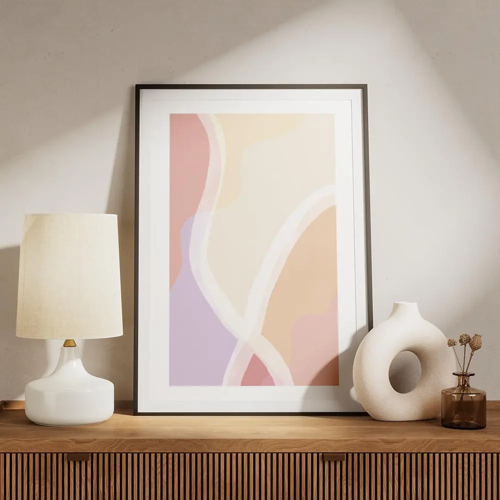 Accroche ce poster sur un mur blanc ou crème. Associe-le à un cadre fin en bois clair, des plantes vertes et du mobilier scandinave. Il marche bien avec des coussins pastel ou un tapis naturel. Pour compléter la déco, on propose aussi de jeter un oeil à nos posters art abstrait ou à nos illustrations.