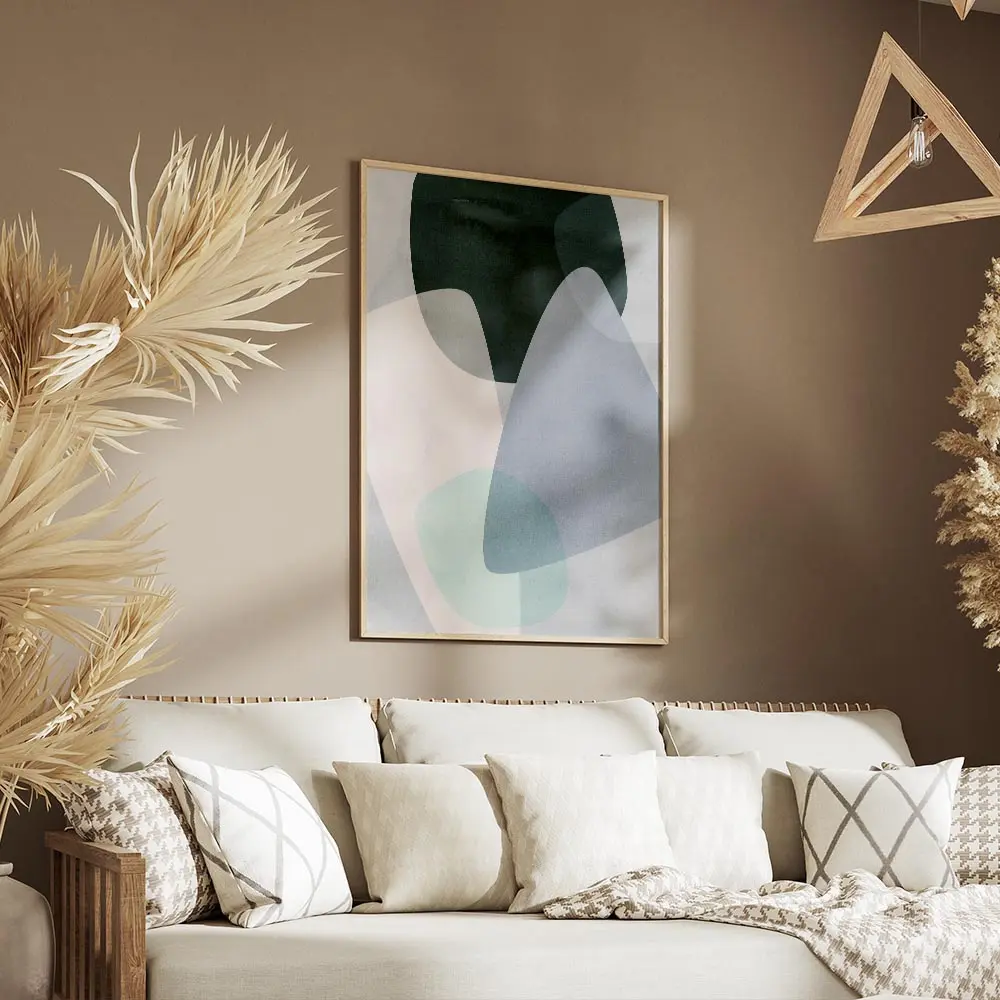 affiche avec formes abstraites aux couleurs pastel bleu vert et rose sur fond cl.webp