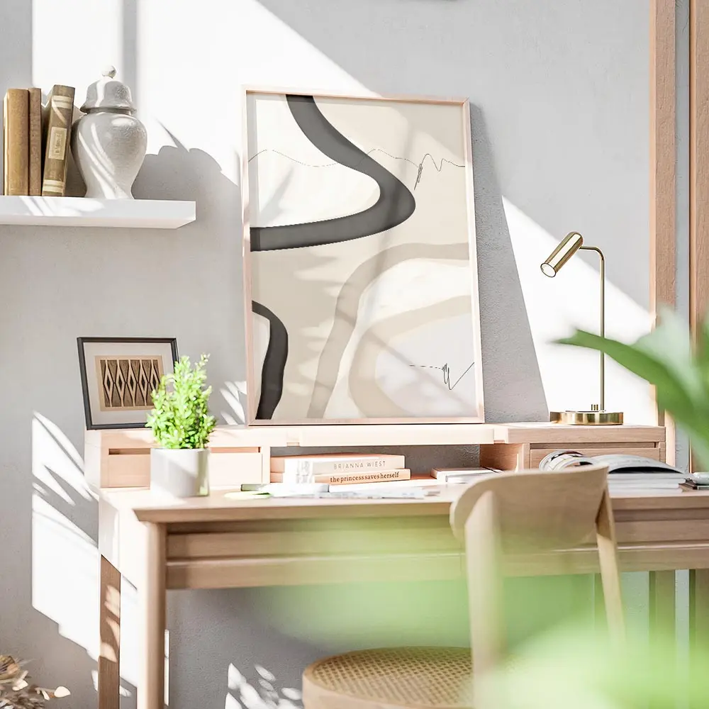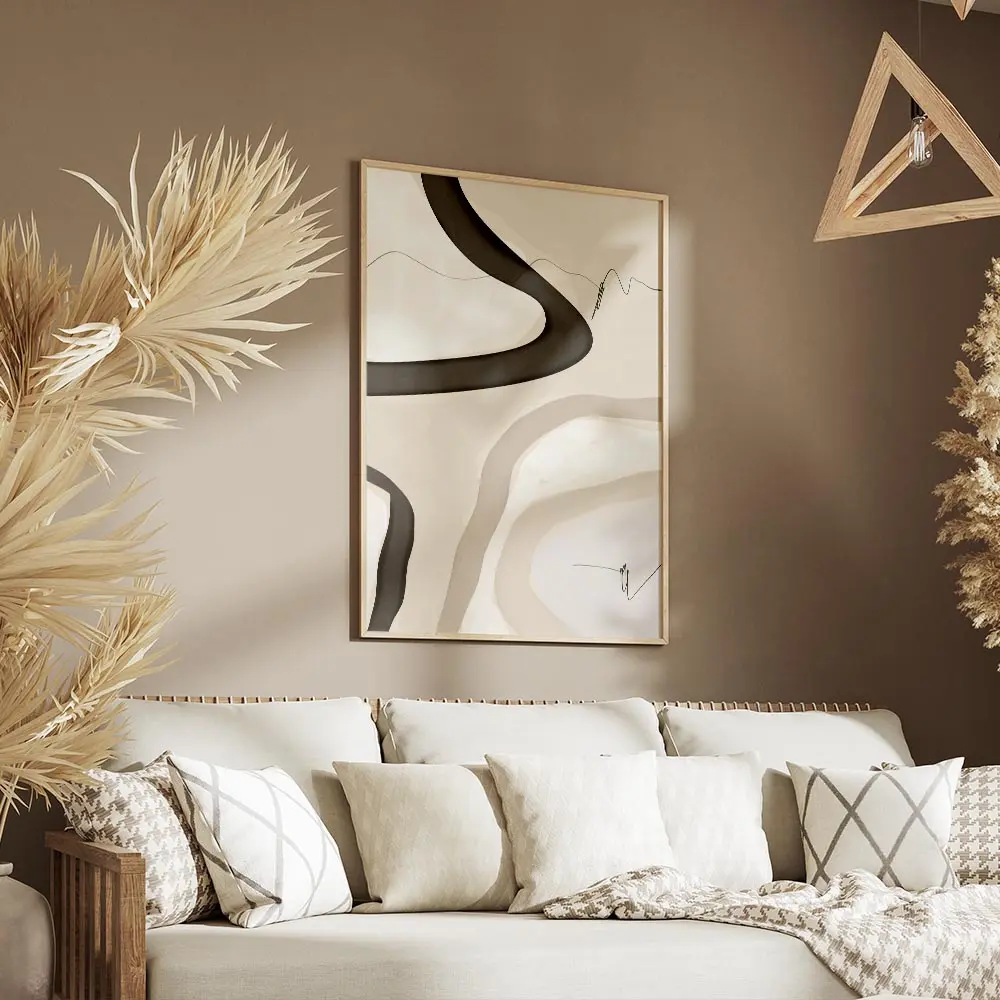 Accroché au-dessus d’un canapé clair ou d’un buffet en bois, ce poster s’accorde avec des coussins beiges, une lampe noire et une plante verte pour réchauffer. Pour d’autres idées, découvrir nos posters art abstrait ou nos affiches art minimaliste.