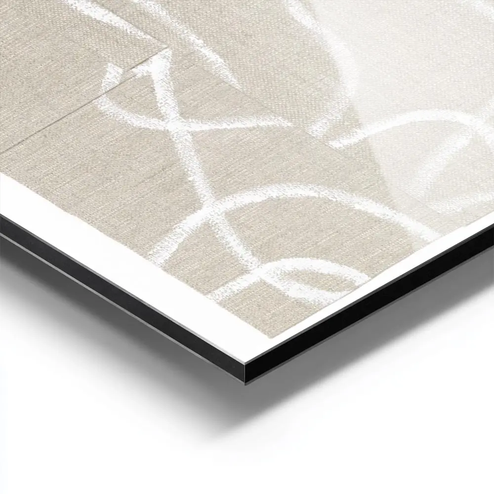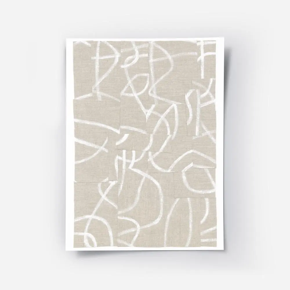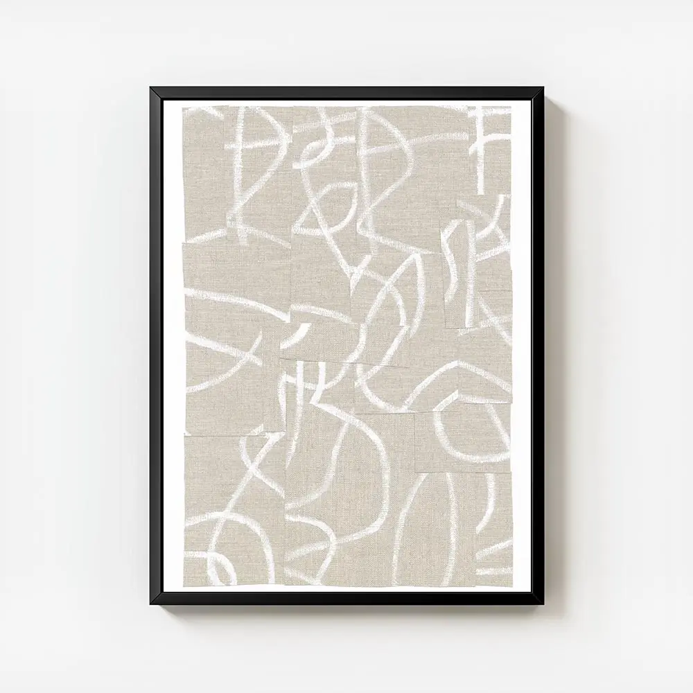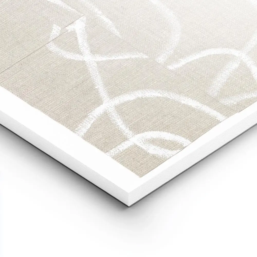 Affiche lignes abstraites blanches fond textile beige, élégance douce et graphique