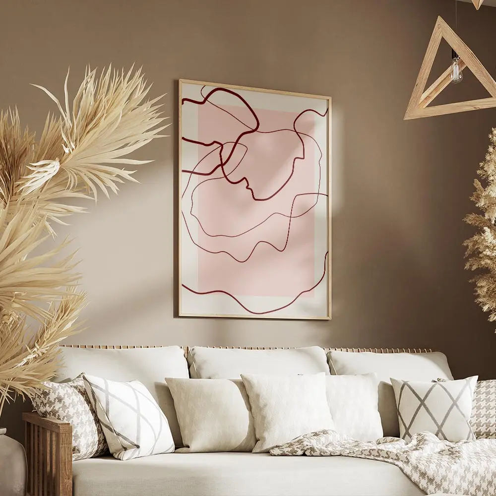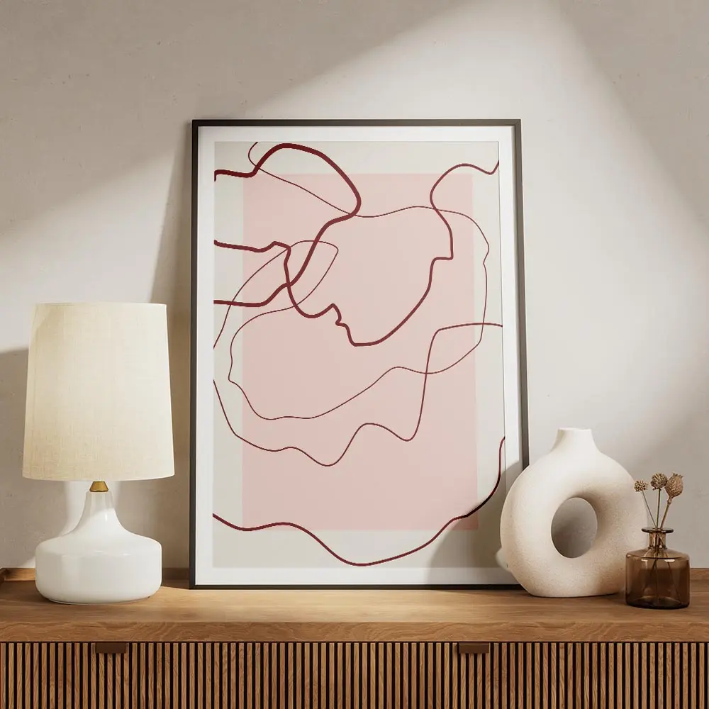 Sur un mur blanc ou crème, ce poster apporte douceur et caractère. On associe avec du bois clair, un tapis naturel, ou des coussins terre cuite pour rappeler les rouges. Style minimaliste ou contemporain, cadre fin blanc ou noir. Pour compléter la sélection, découvrez nos posters art abstrait et la rubrique graphisme.
