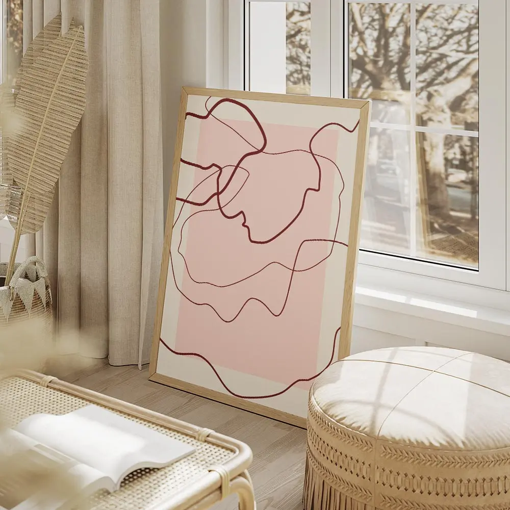 Affiche lignes abstraites rouges fond rose beige