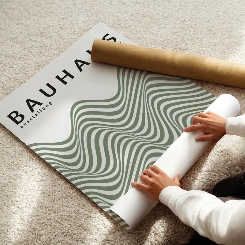 On adore vraiment le Poster vagues modernes Bauhaus. En le regardant, on ressent tout de suite une douce tranquillité. Les courbes des vagues, c'est comme un souffle apaisant qui nous emporte. Ce mélange de formes et de couleurs, il nous fait penser à une belle journée au bord de la mer, entourés de bonnes vibes.