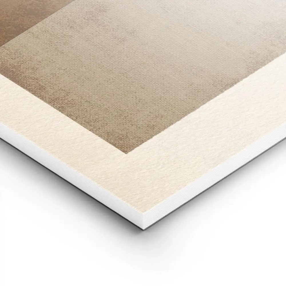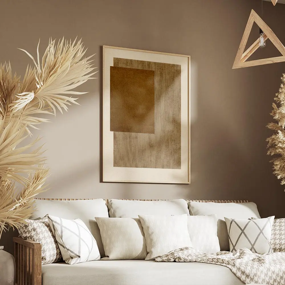 Affiche minimaliste rectangles cuir et toile, une composition sobre